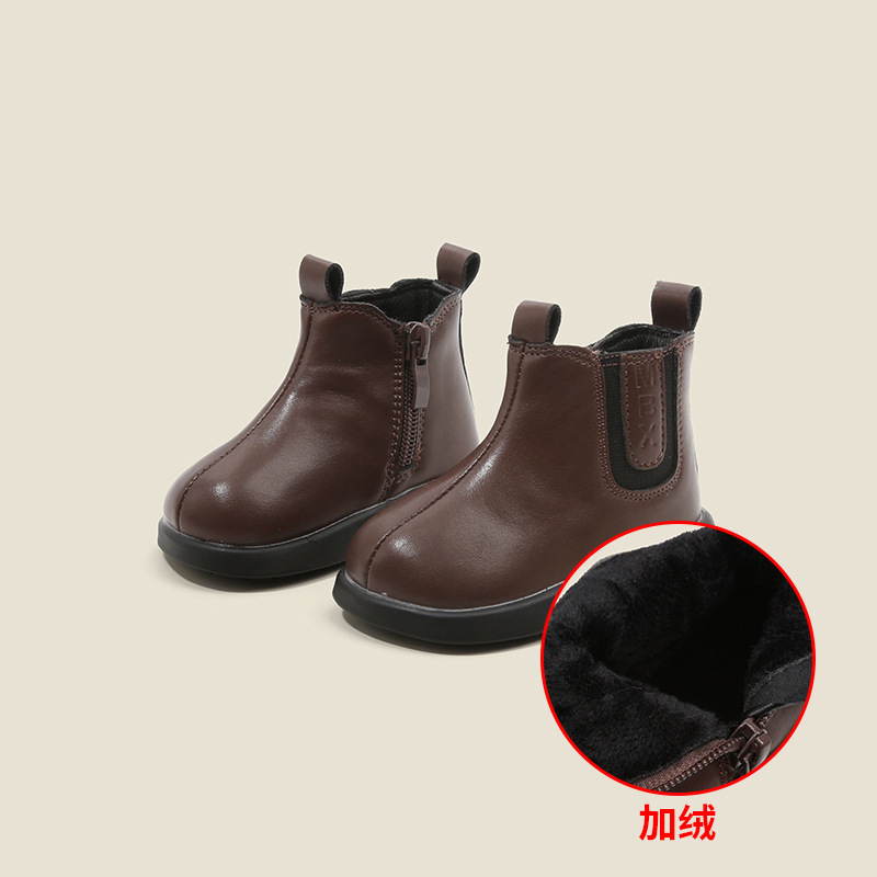 Maibu 곰 한국 스타일 부드러운 가죽 부츠 여자 아기 유아 신발 아기 어린이 마틴 부츠 가을과 겨울 기모 소년 신발스토어 가기