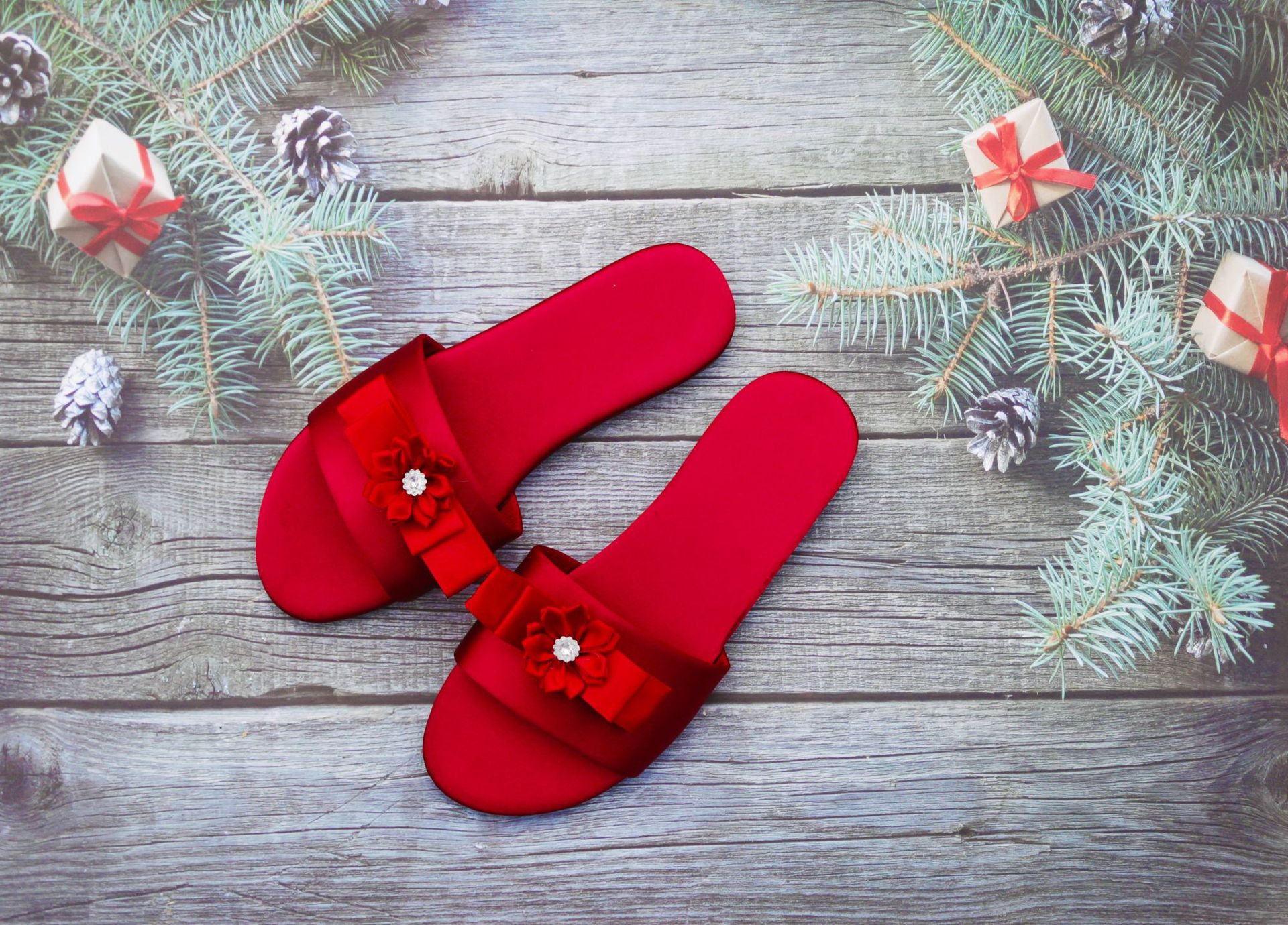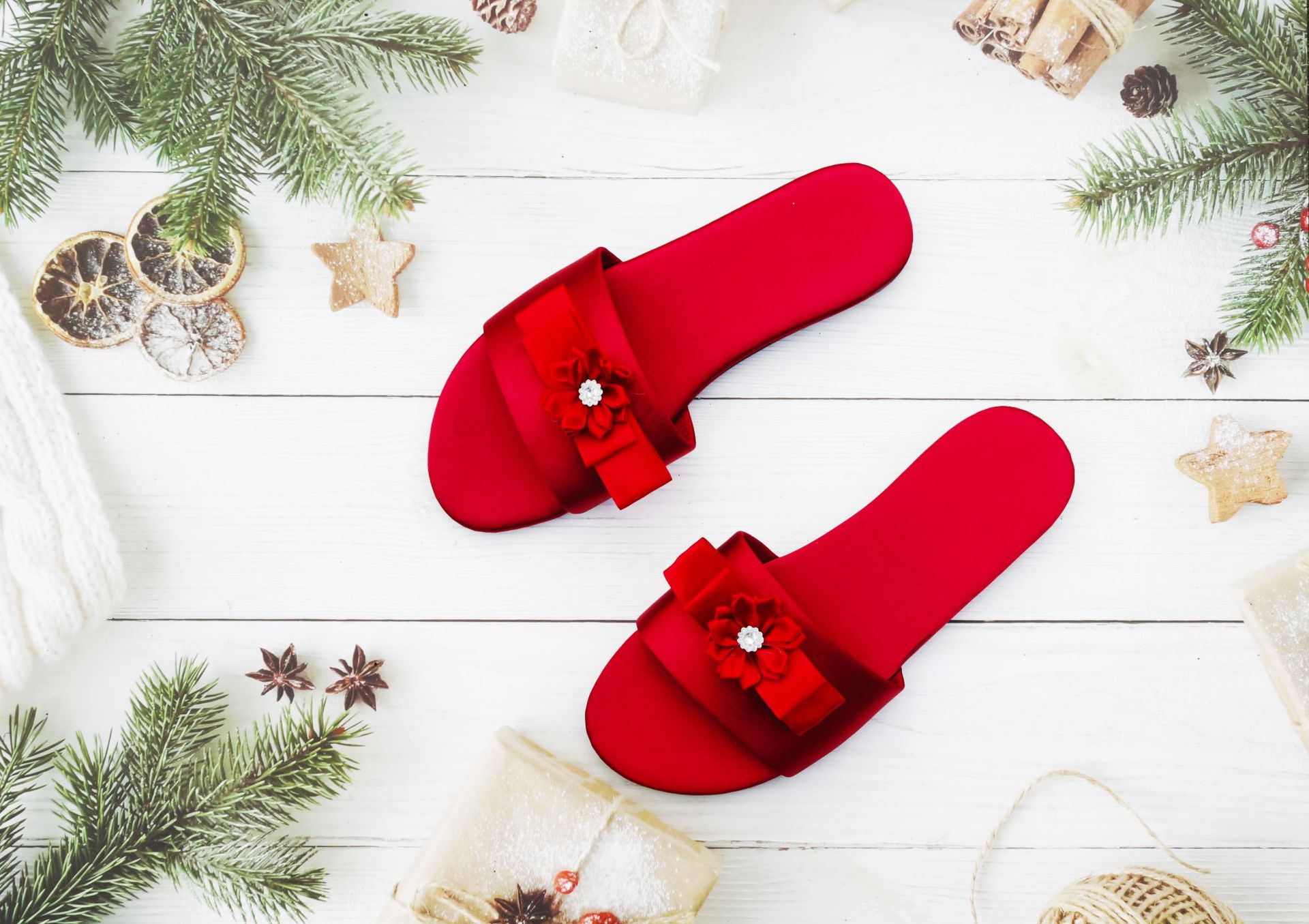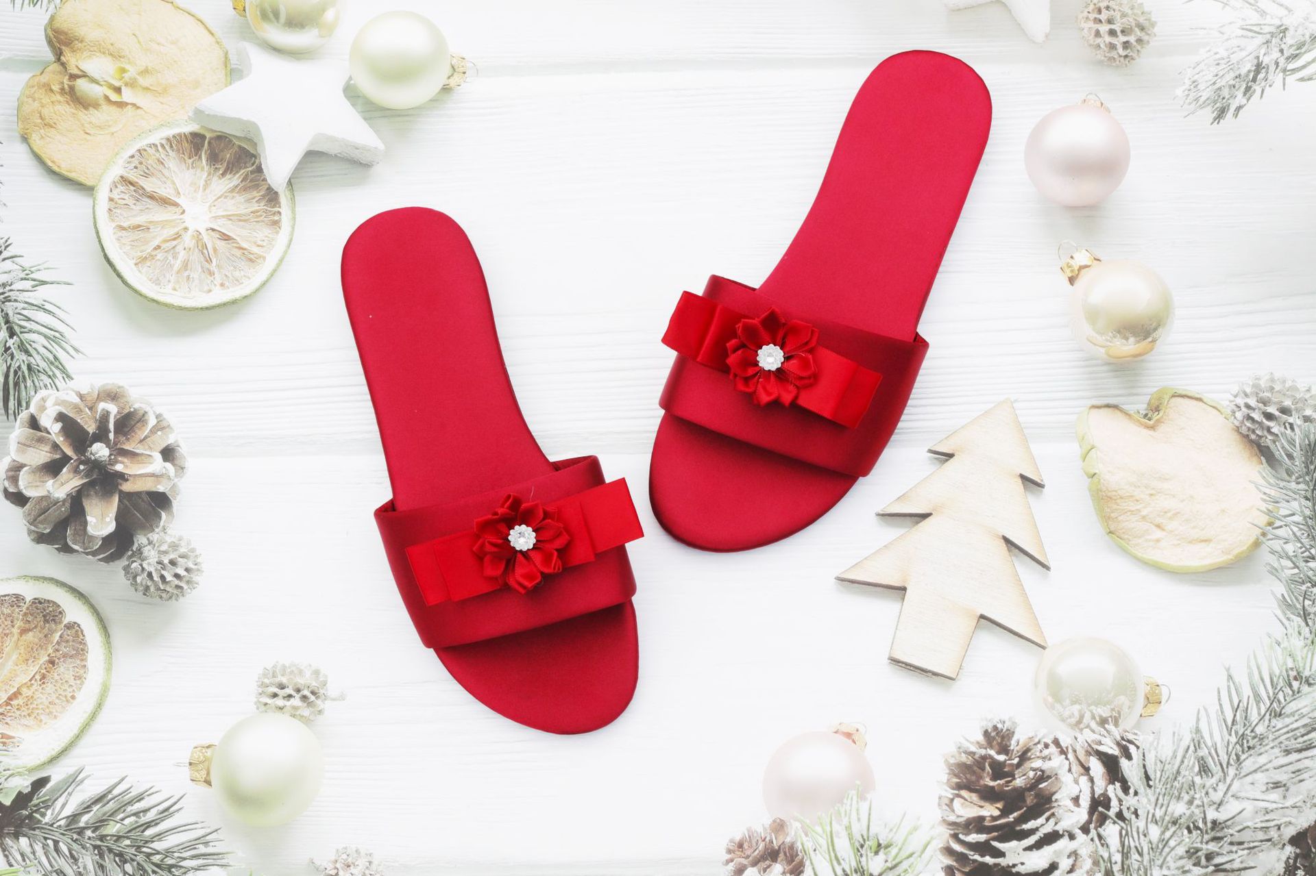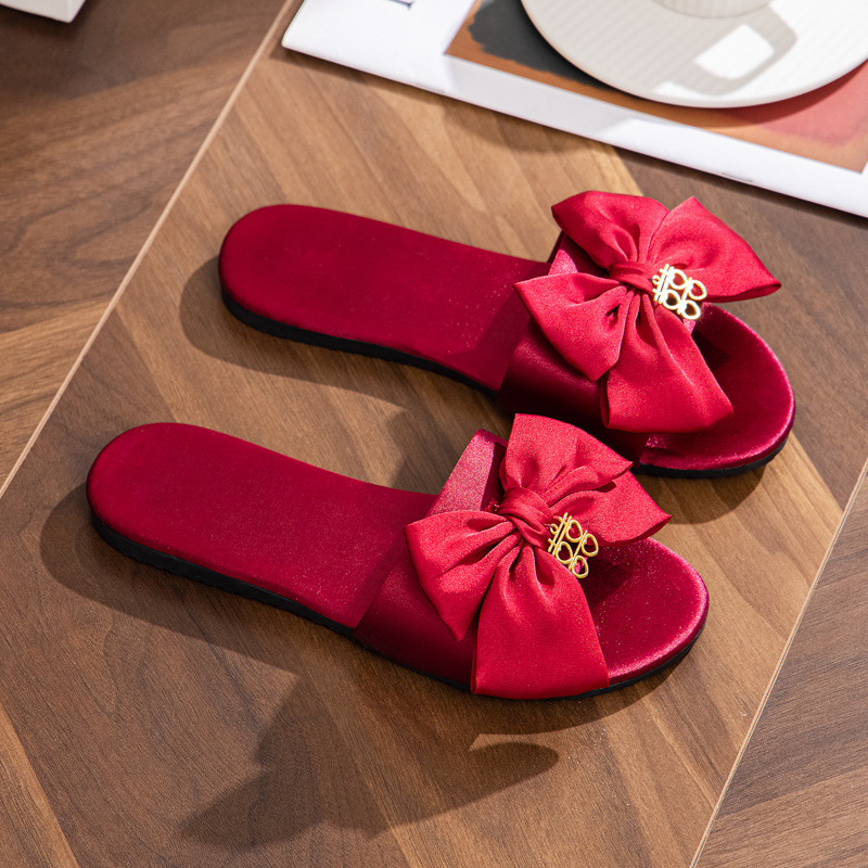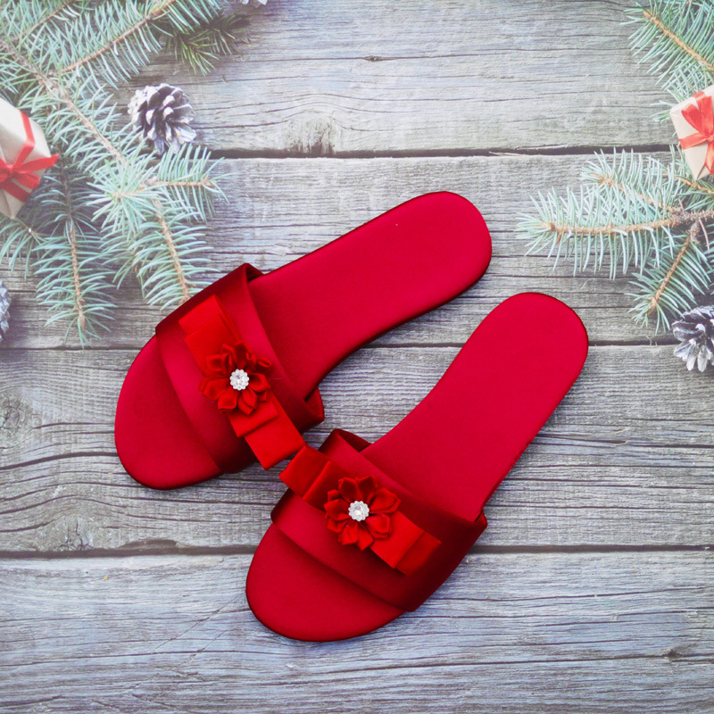 새로운 웨딩 들러리 슬리퍼 여성용 웨딩 새틴 레드 슬리퍼 웨딩 신부 모닝 가운 매칭 슈즈 여성용 원피스 헤어