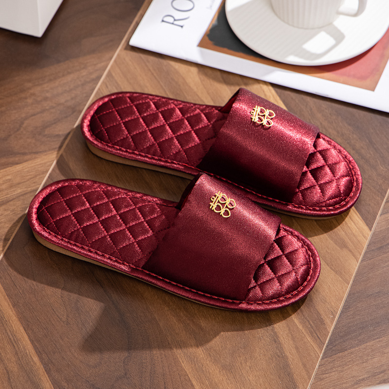 새로운 웨딩 들러리 슬리퍼 여성용 웨딩 새틴 레드 슬리퍼 웨딩 신부 모닝 가운 매칭 슈즈 여성용 원피스 헤어스토어 가기
