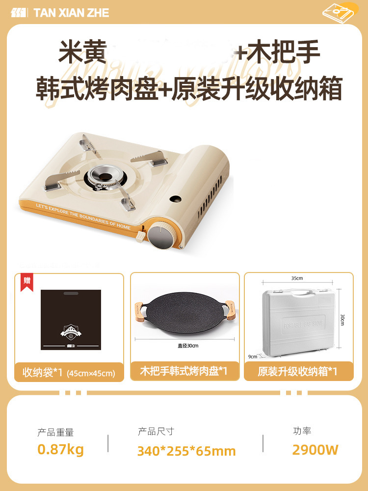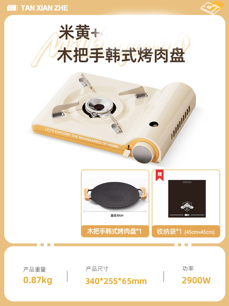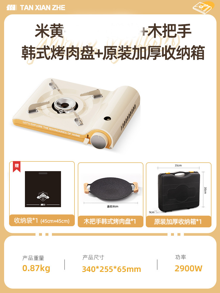 • 초박형 카세트 오븐 + 나무 손잡이 한식 바비큐 접시 + 흰색 두꺼운 보관함