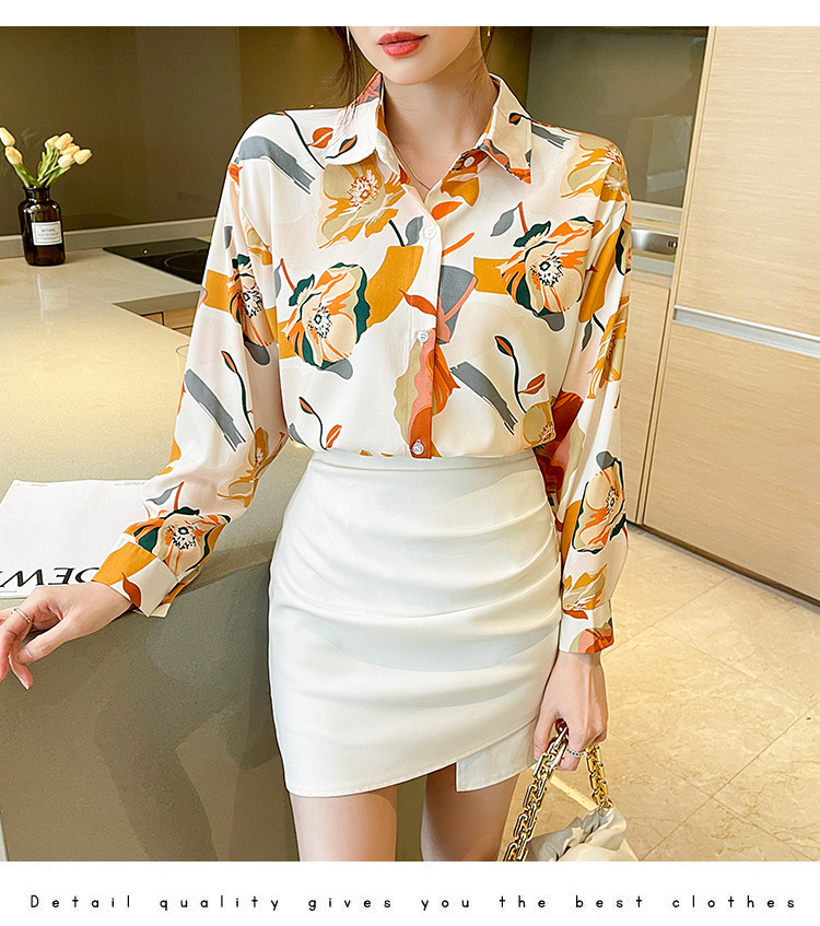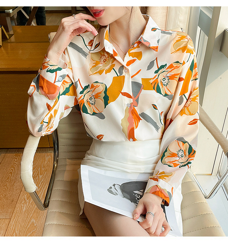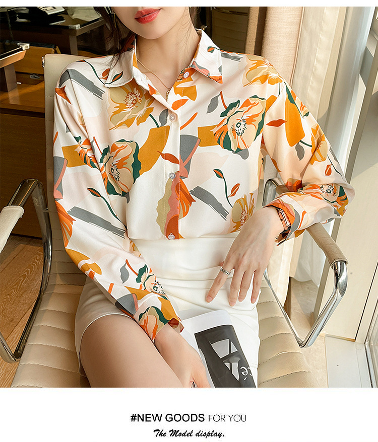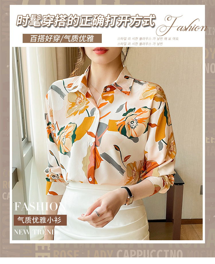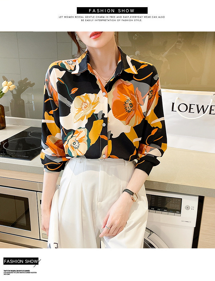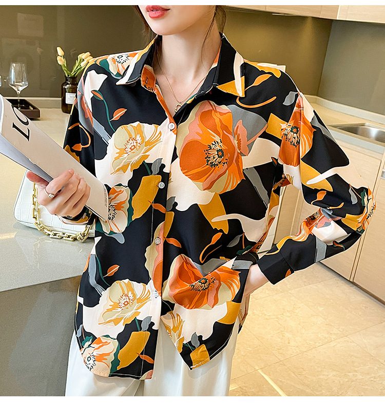 2024 셔츠 긴팔 새 인쇄 탑 유행 우아한 느슨한 올 매치 슬림 핏 인쇄 패턴 여성용 탑스토어 가기