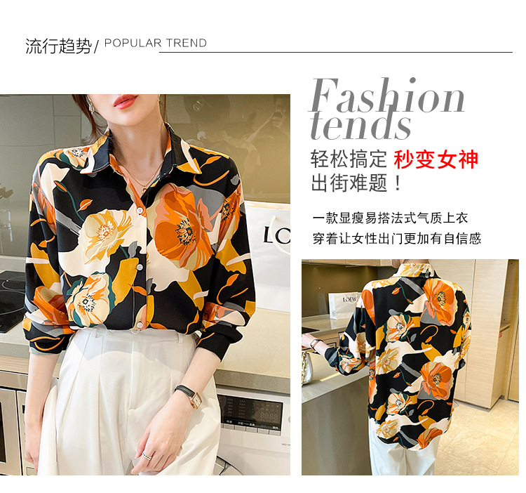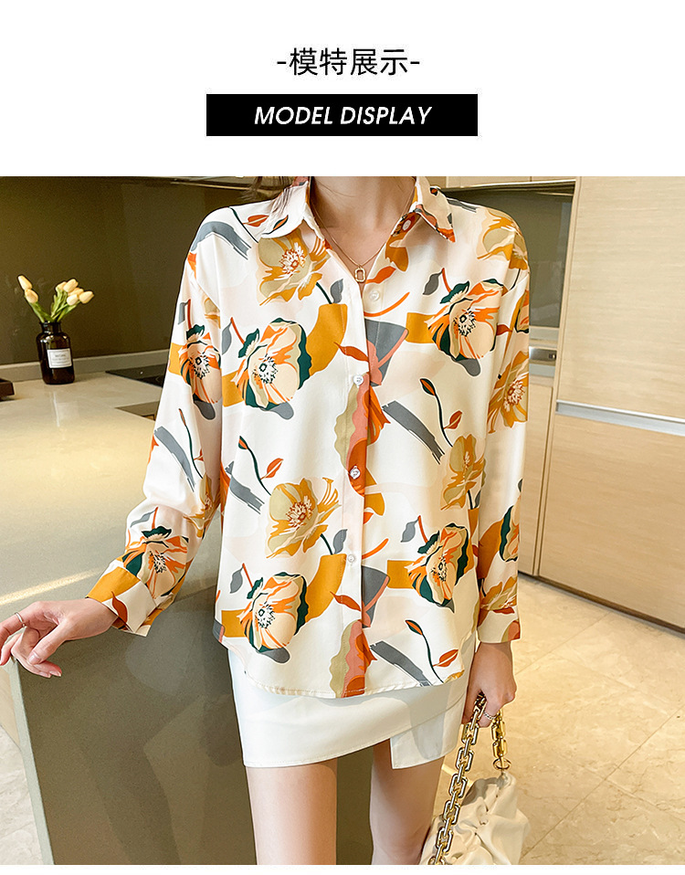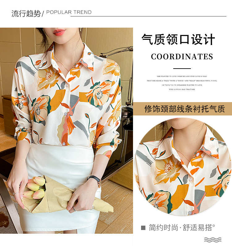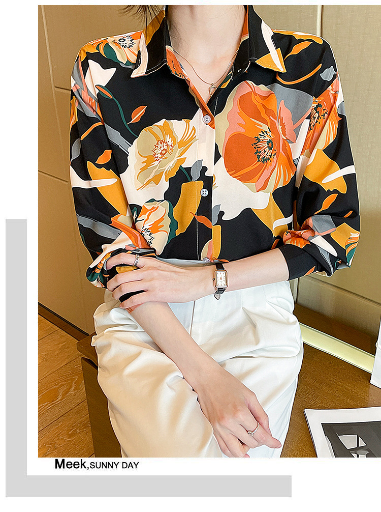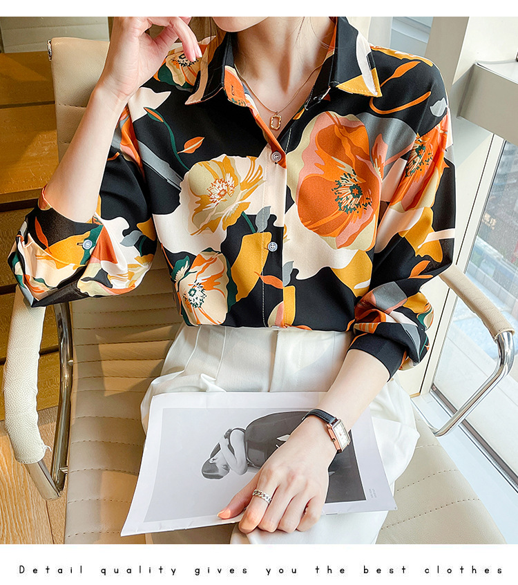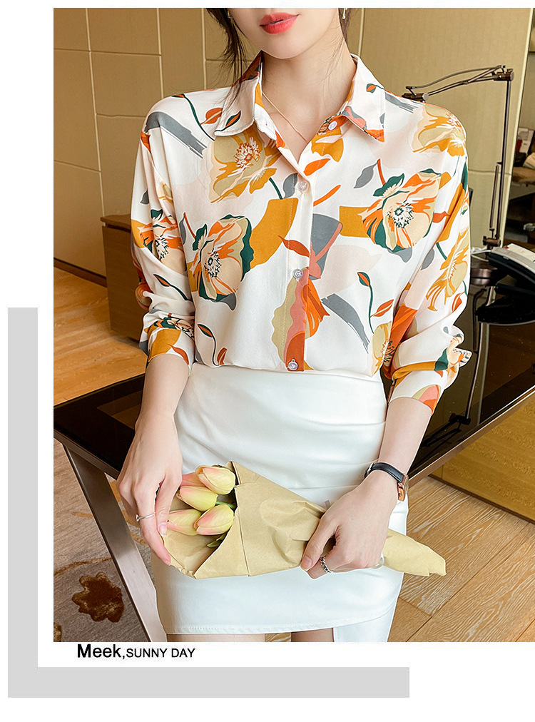 2024 셔츠 긴팔 새 인쇄 탑 유행 우아한 느슨한 올 매치 슬림 핏 인쇄 패턴 여성용 탑스토어 가기
