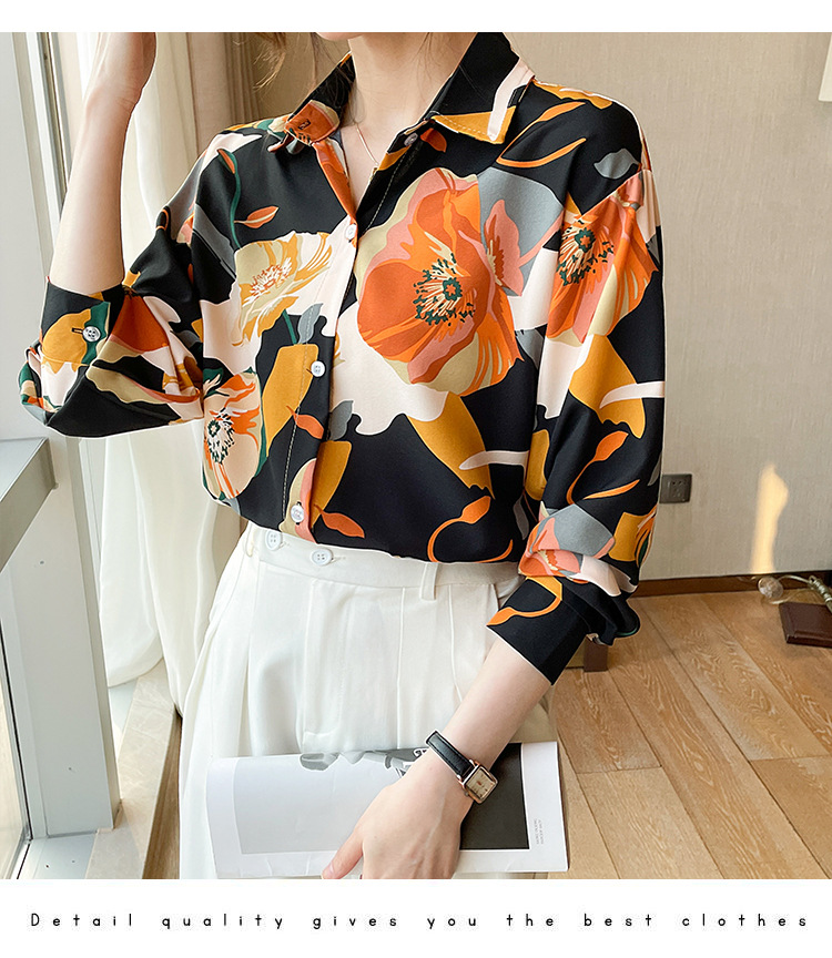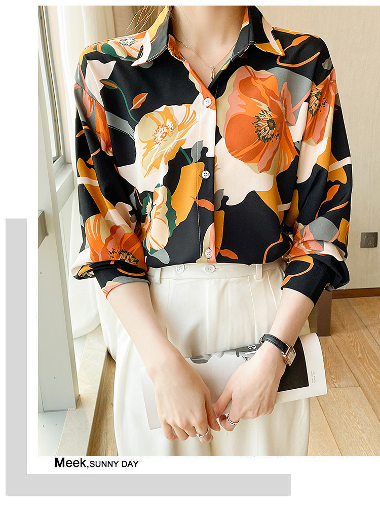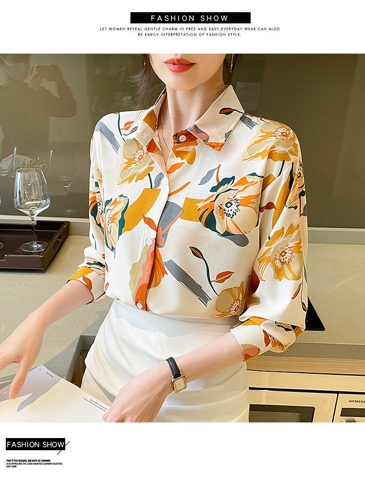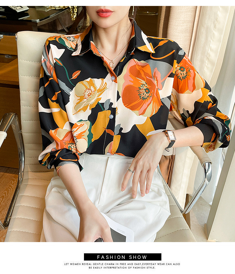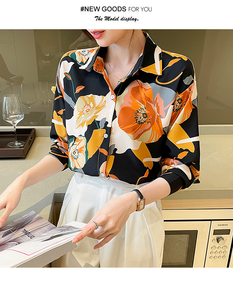 2024 셔츠 긴팔 새 인쇄 탑 유행 우아한 느슨한 올 매치 슬림 핏 인쇄 패턴 여성용 탑