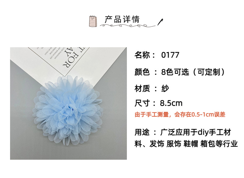 공장 직접 쉬폰 스노우 원사 꽃 DIY 어린이 헤어 액세서리 코세이지 신발 및 모자 장식 재료 의류 액세서리 도매스토어 가기