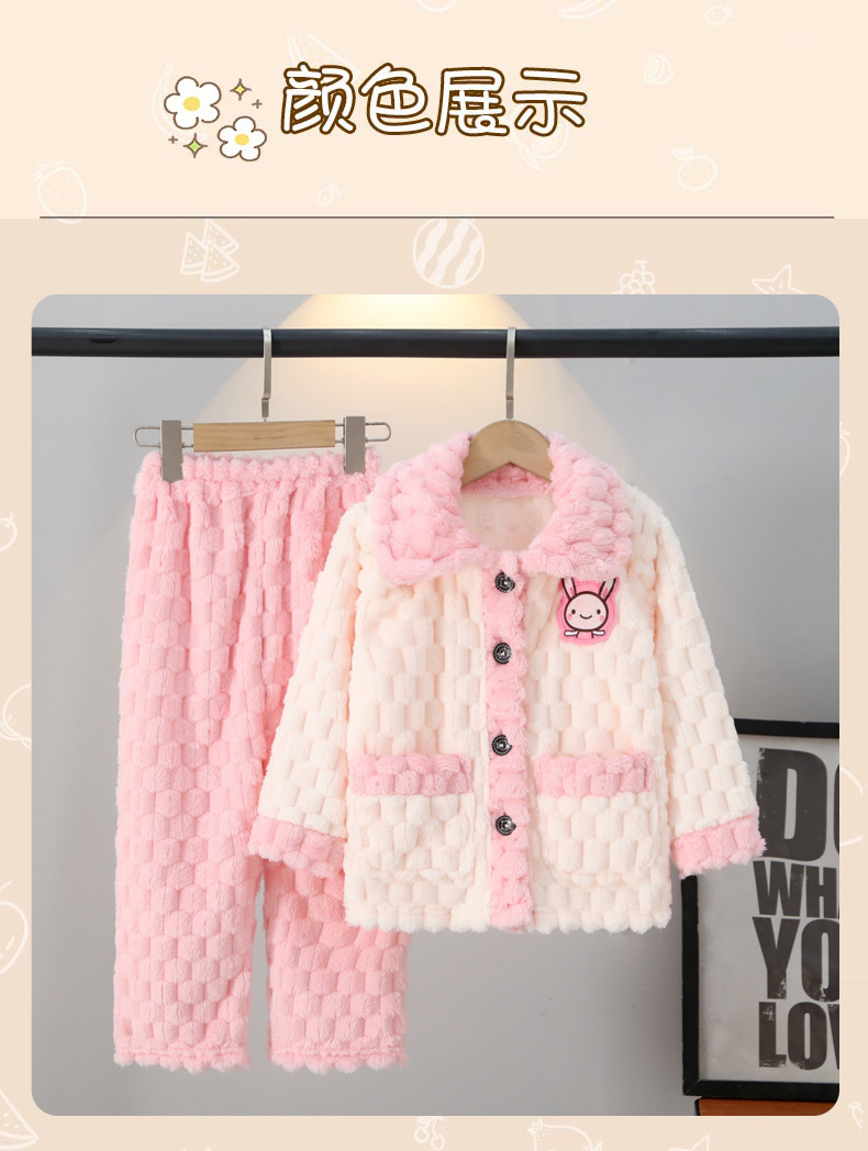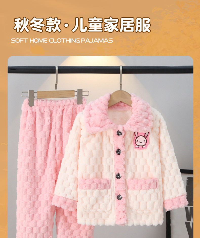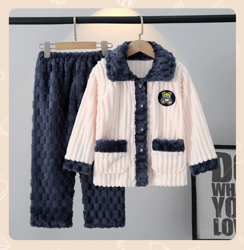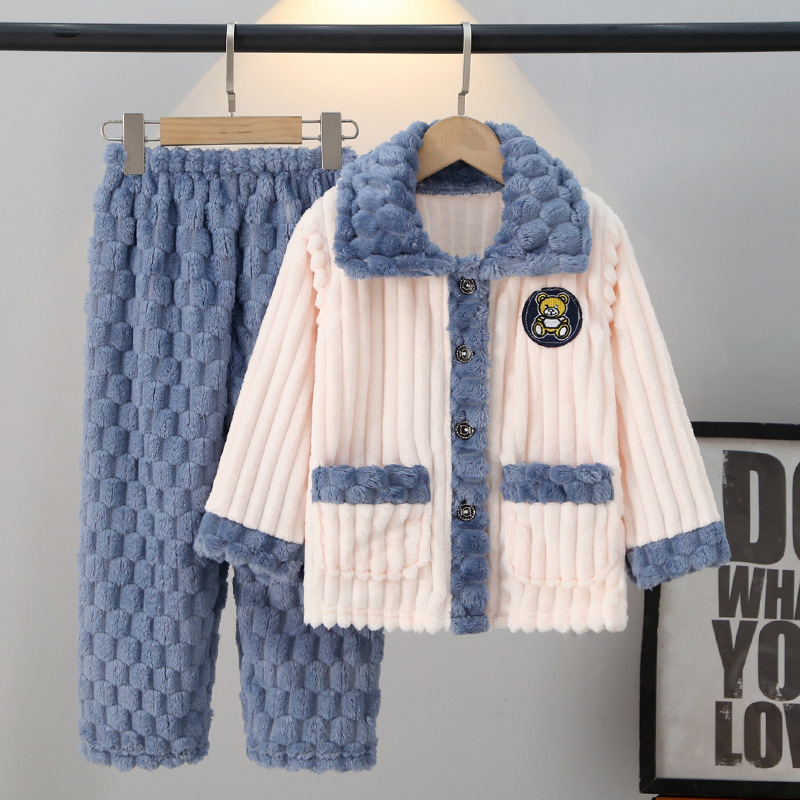 가을과 겨울 어린이 잠옷 산호 양털 소년과 소녀 플란넬 아기 겨울 가정 두꺼운 따뜻한 세트 착용
