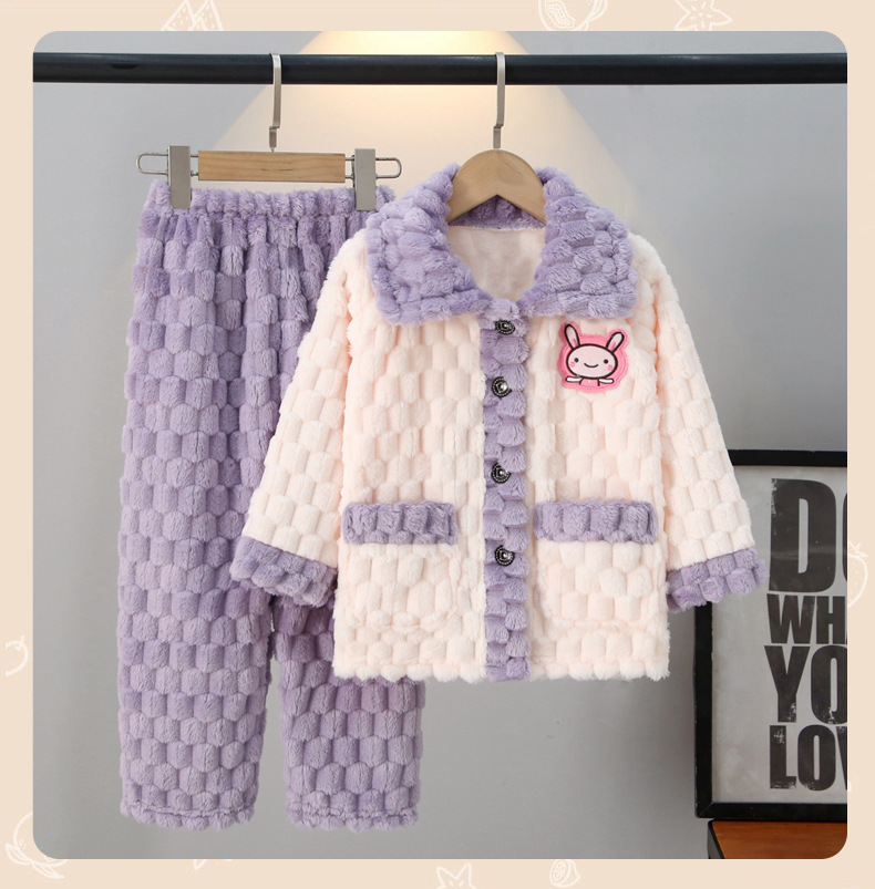 가을과 겨울 어린이 잠옷 산호 양털 소년과 소녀 플란넬 아기 겨울 가정 두꺼운 따뜻한 세트 착용스토어 가기