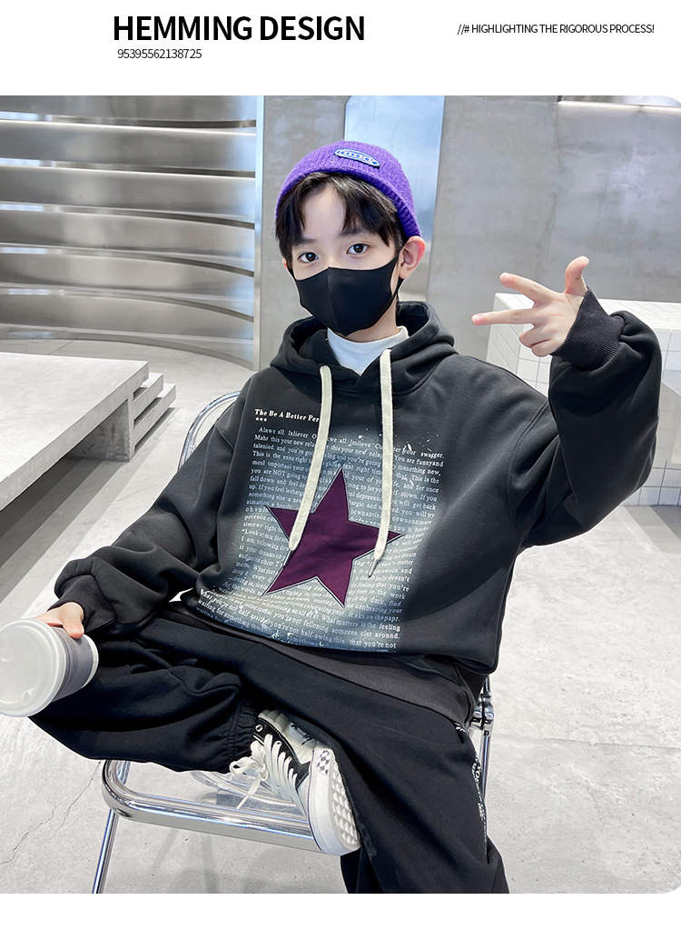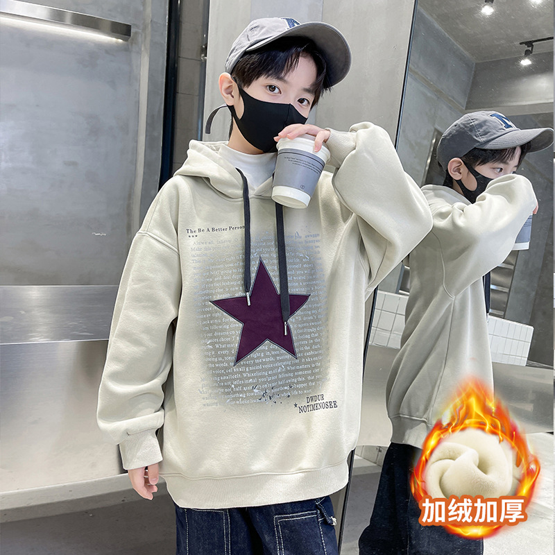 소년 미드 빅 어린이의 새로운 롱 올림픽 그레인 벨벳 북유럽 스타일 아메리칸 스타일 스웨터 어린이 기모 가을과 겨울 캐주얼 탑 두꺼운스토어 가기