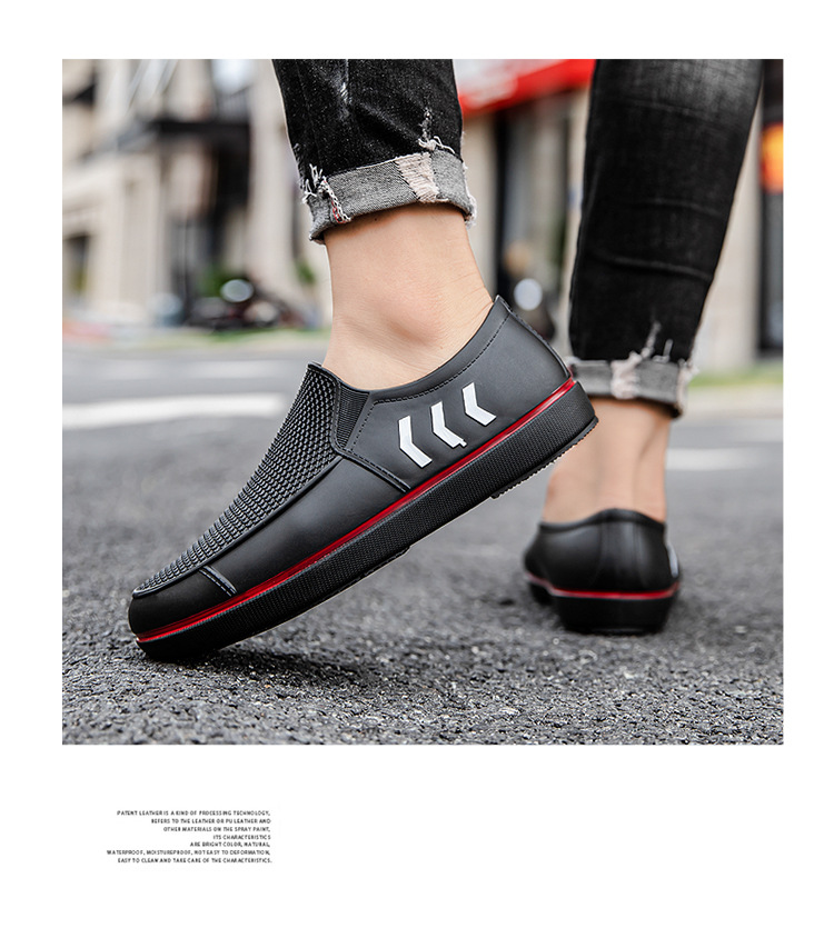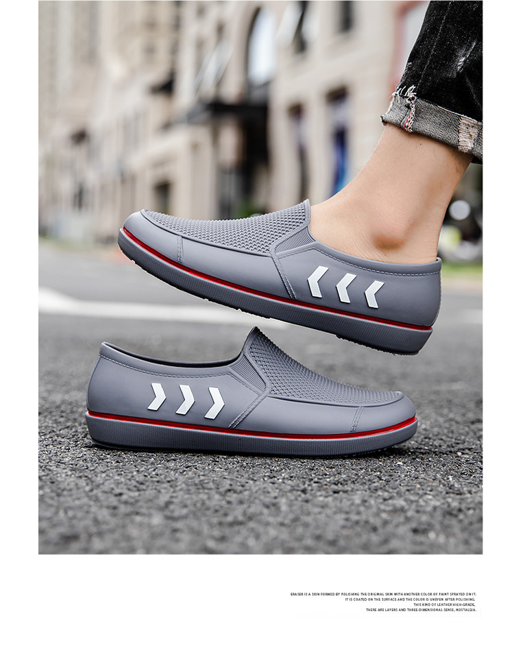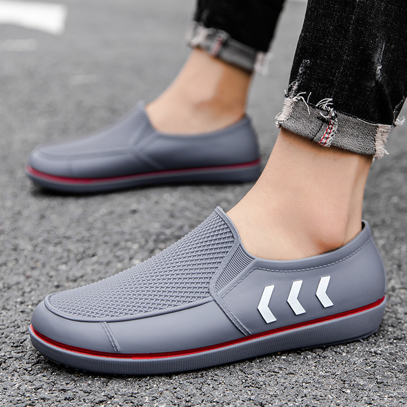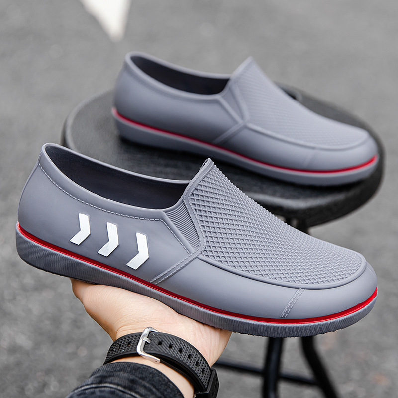 2023 봄과 가을 신상품 남성용 워터 슈즈 성인 미끄럼 방지 로우 탑 레인 슈즈 세련된 플랫 얕은 입 작업 신발 남성용 고무 신발