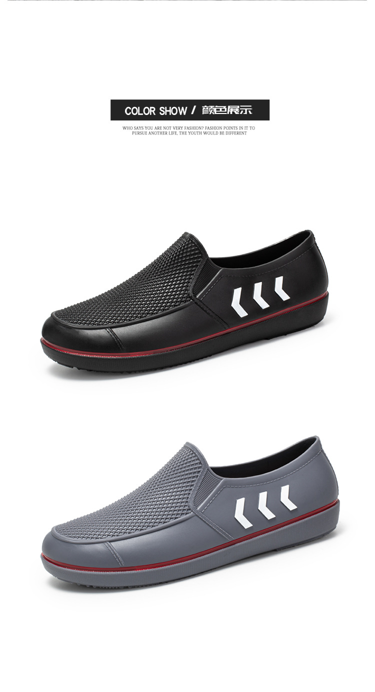 2023 봄과 가을 신상품 남성용 워터 슈즈 성인 미끄럼 방지 로우 탑 레인 슈즈 세련된 플랫 얕은 입 작업 신발 남성용 고무 신발스토어 가기