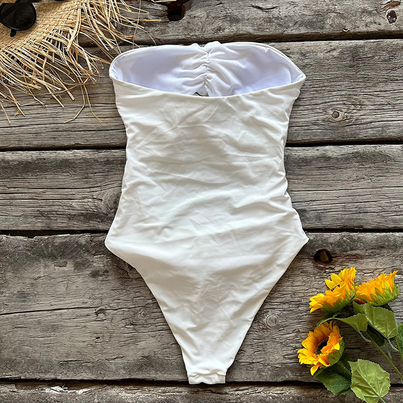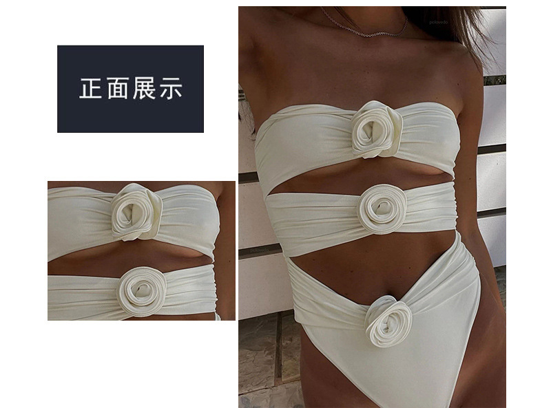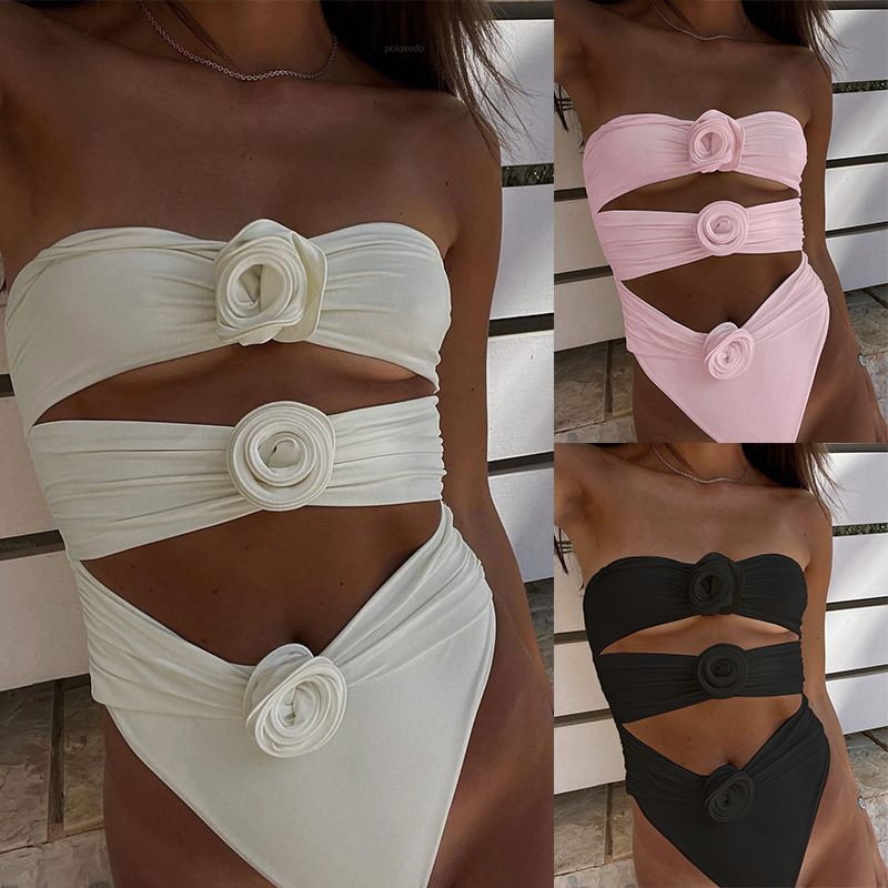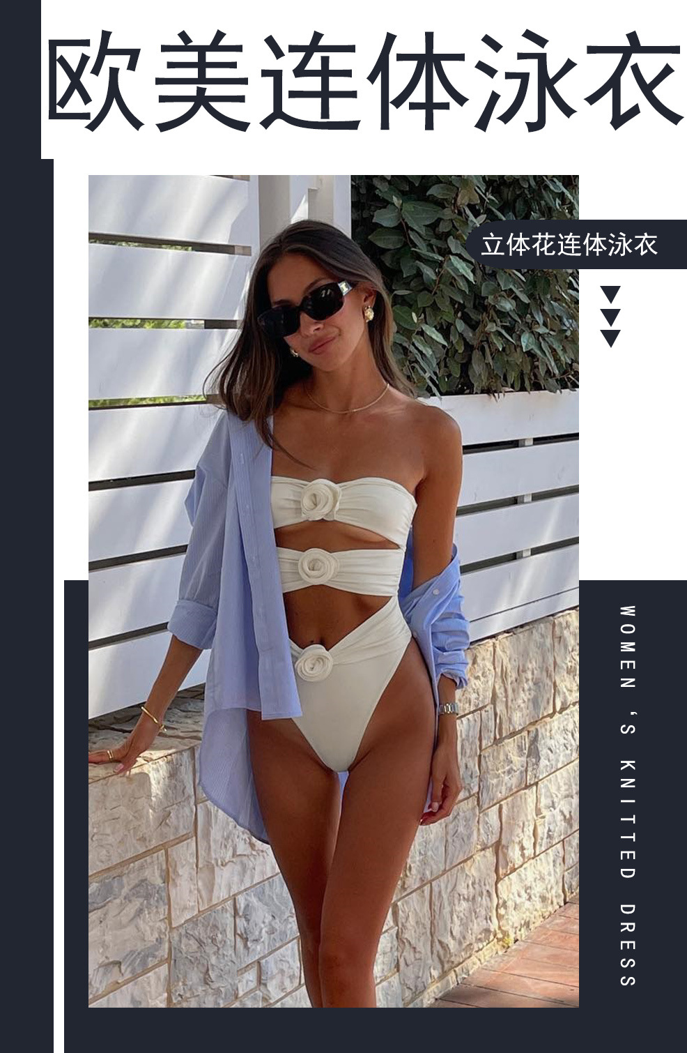 2025 국경 새로운 패션 유럽과 미국의 단색 섹시한 튜브 탑 오프 숄더 원피스 여성 입체 꽃 디자인 수영복스토어 가기