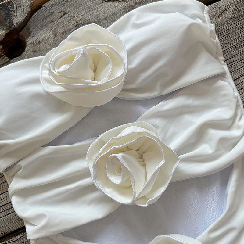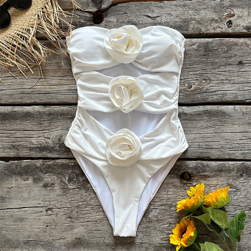 2025 국경 새로운 패션 유럽과 미국의 단색 섹시한 튜브 탑 오프 숄더 원피스 여성 입체 꽃 디자인 수영복