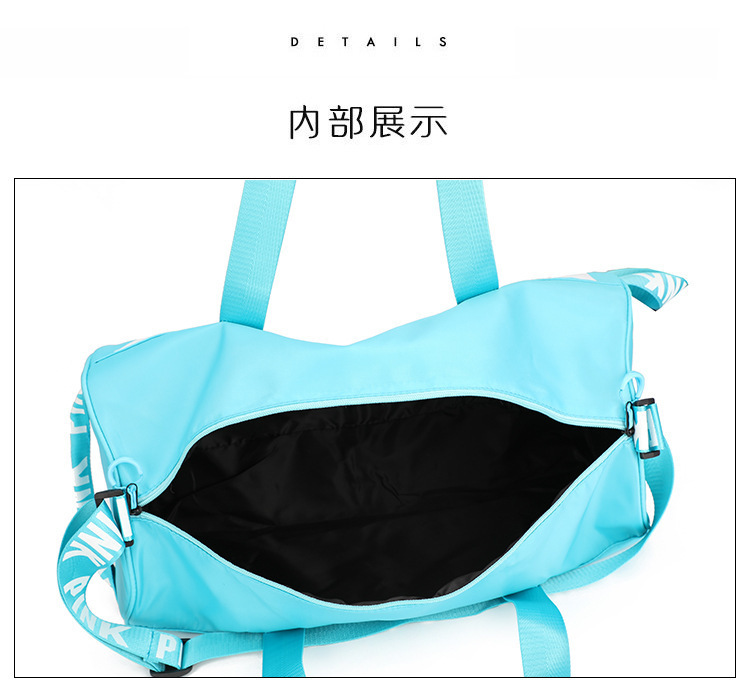 여성용 유행 캐주얼 핑크 휴대용 피트니스 가방 야외 스포츠 가방 경량 대용량 요가 가방 로고 인쇄스토어 가기