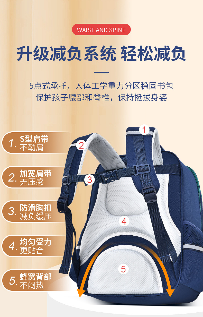 Babou 초등학교 책가방 남아 1-3-6 학년 어린이를위한 경량 방수 배낭