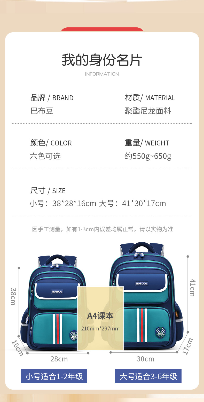 Babou 초등학교 책가방 남아 1-3-6 학년 어린이를위한 경량 방수 배낭스토어 가기