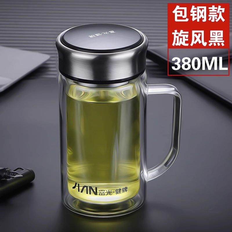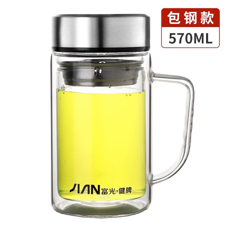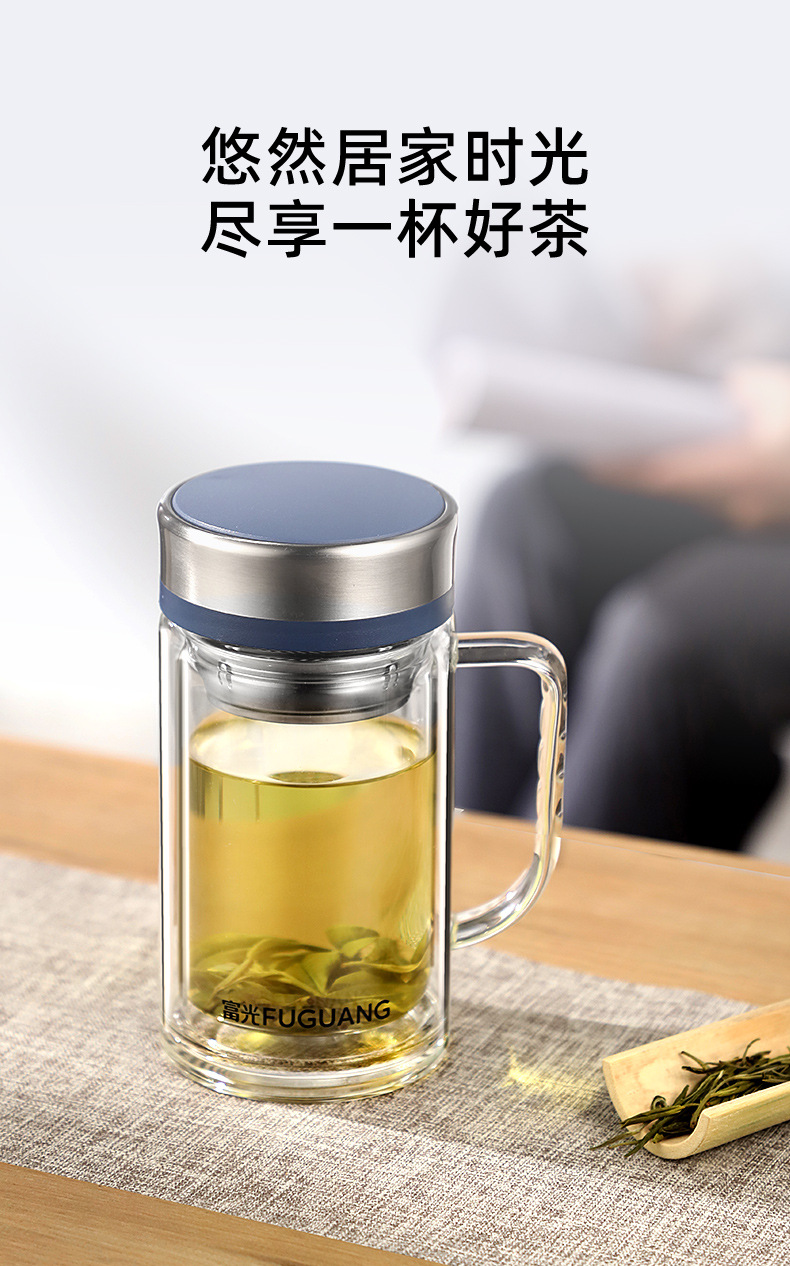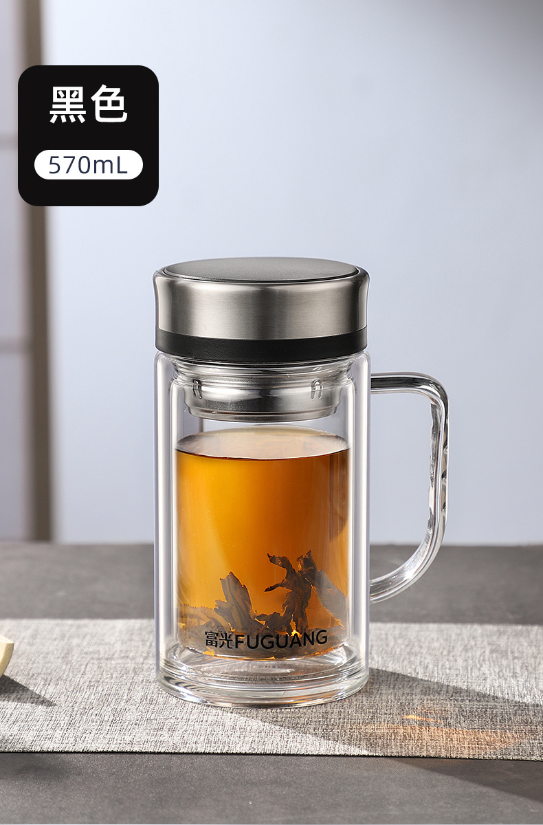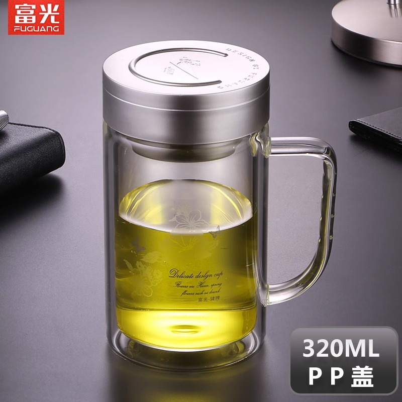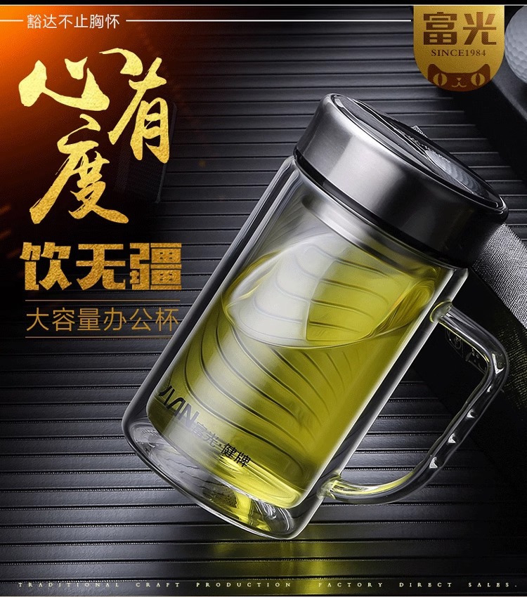 Fuguang Glass 남자 2 층 대용량 절연 차 컵 뚜껑 손잡이 사무실 필터 컵 레터링스토어 가기