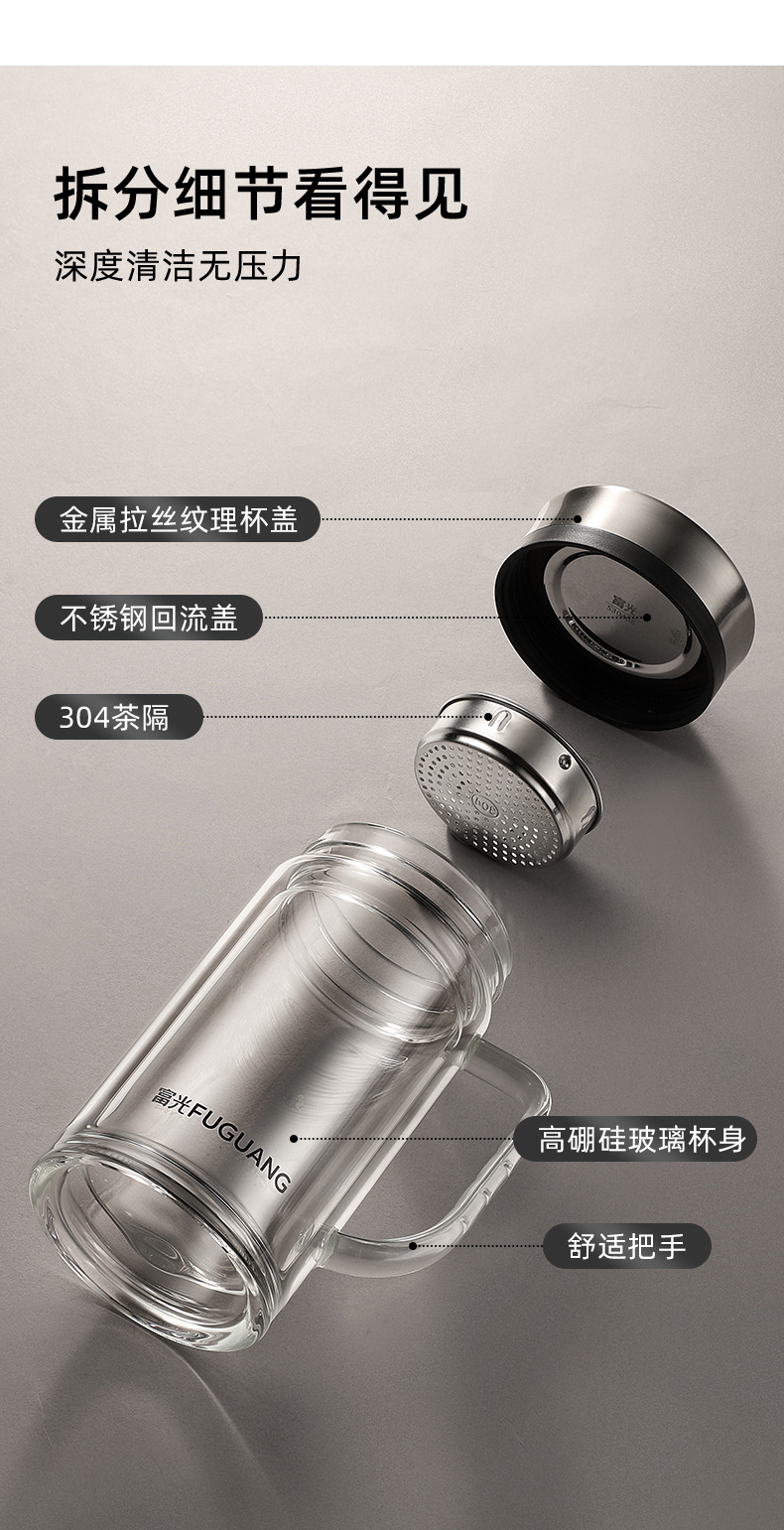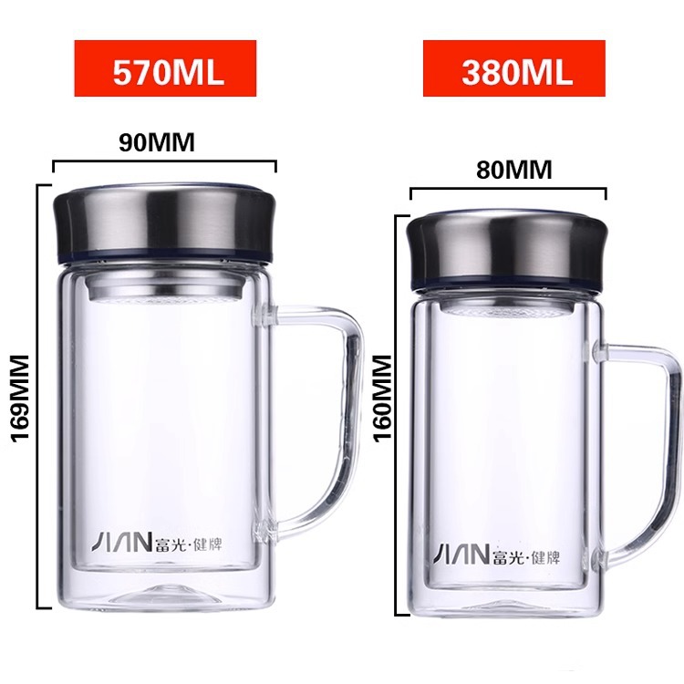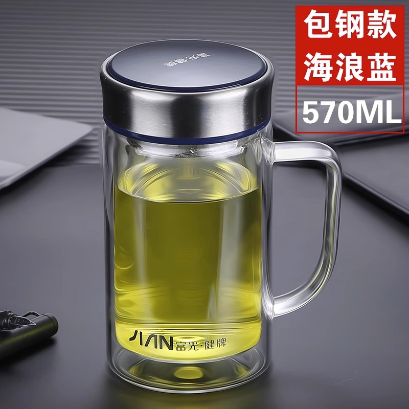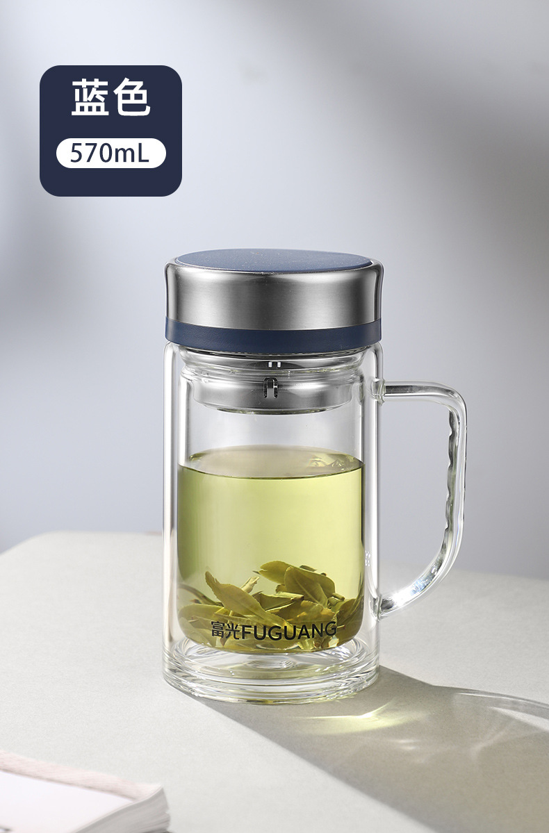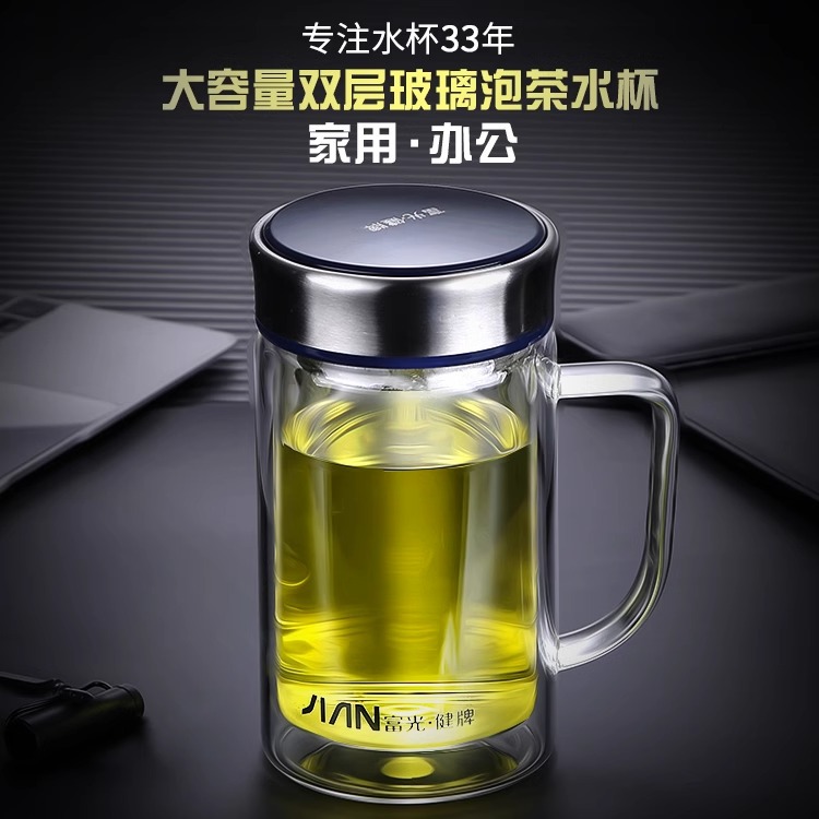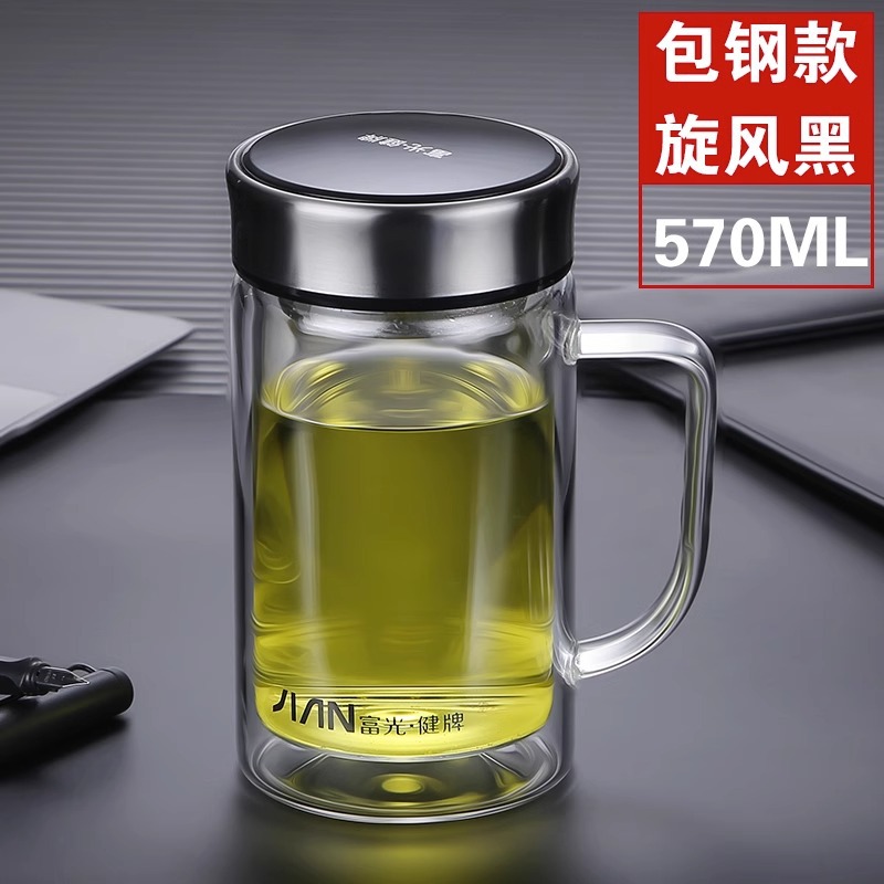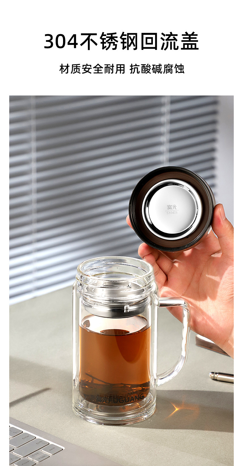 Fuguang Glass 남자 2 층 대용량 절연 차 컵 뚜껑 손잡이 사무실 필터 컵 레터링스토어 가기