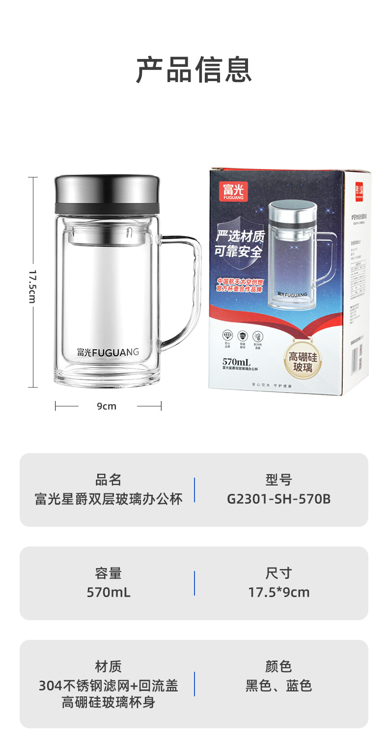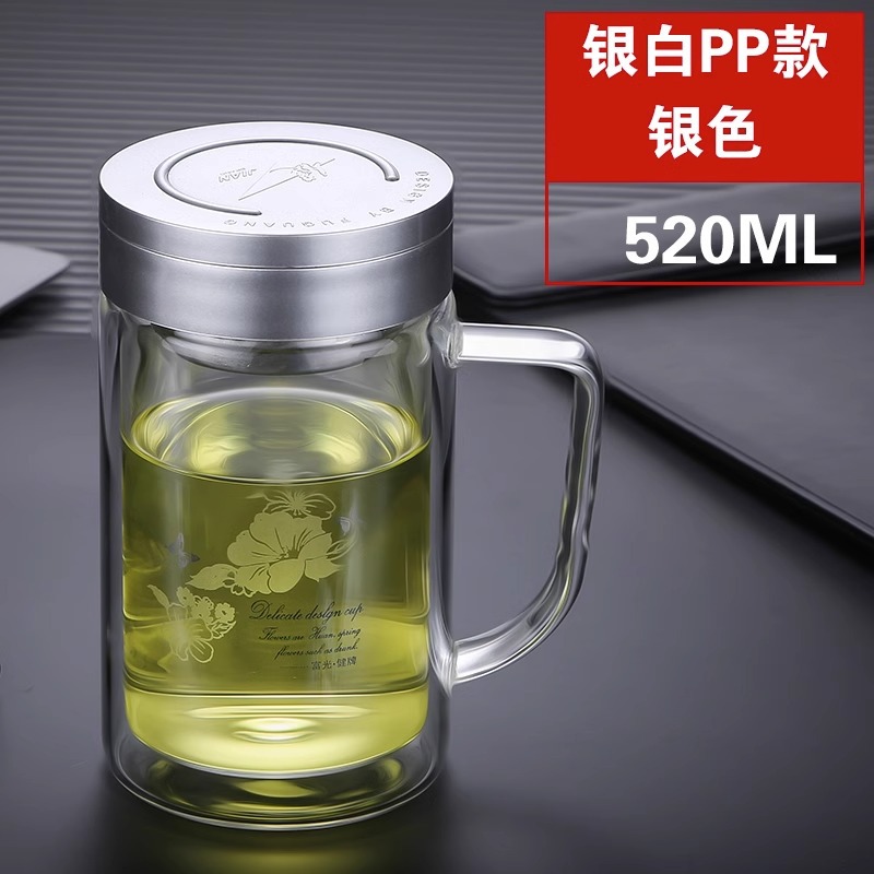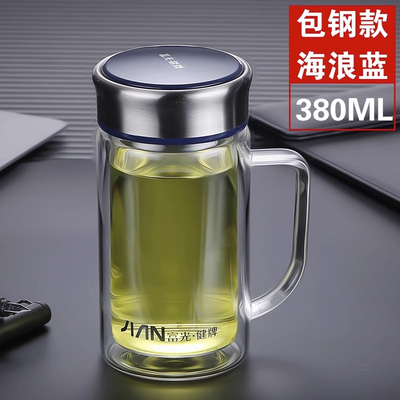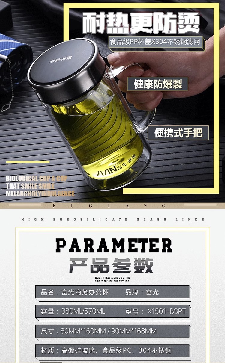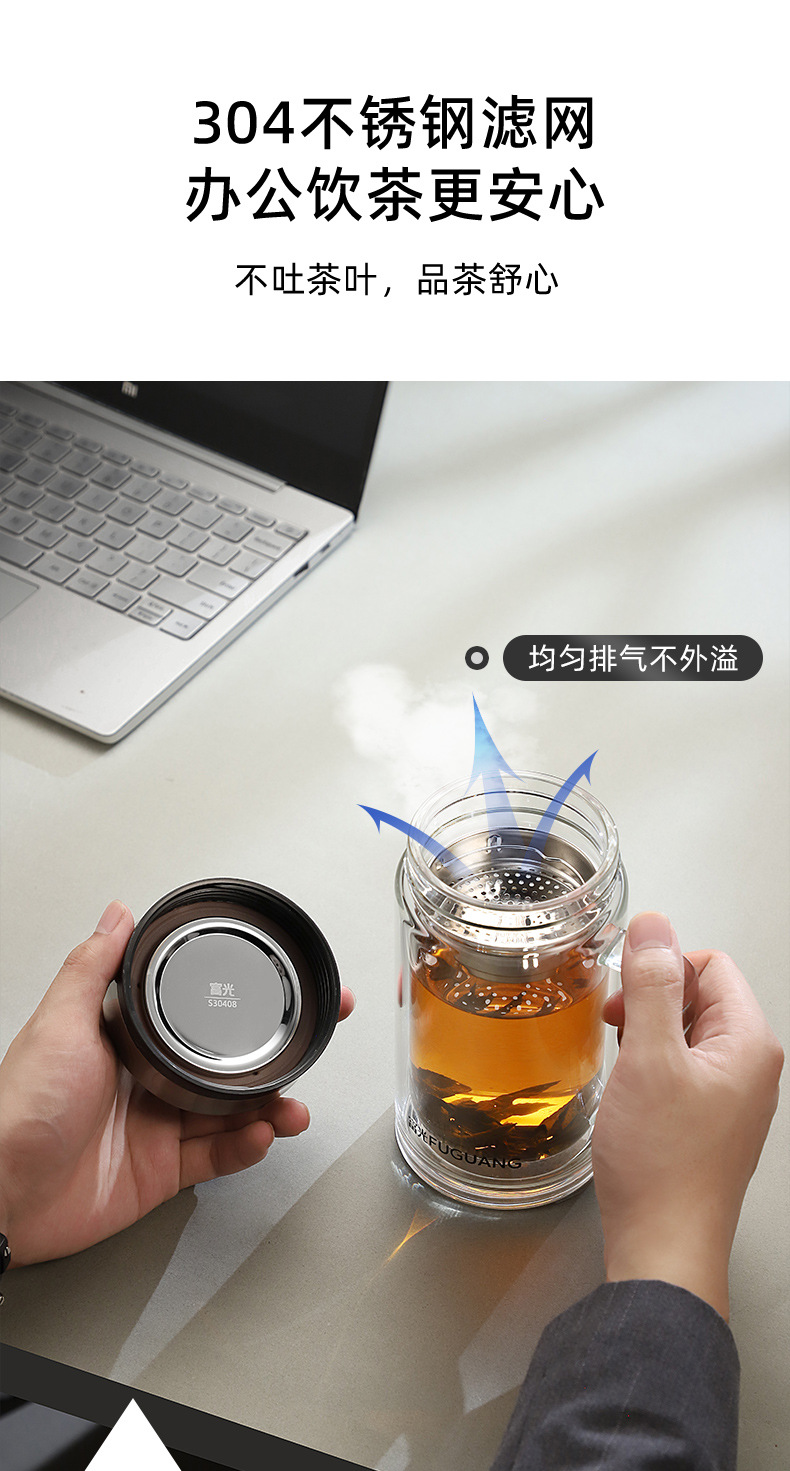 Fuguang Glass 남자 2 층 대용량 절연 차 컵 뚜껑 손잡이 사무실 필터 컵 레터링스토어 가기