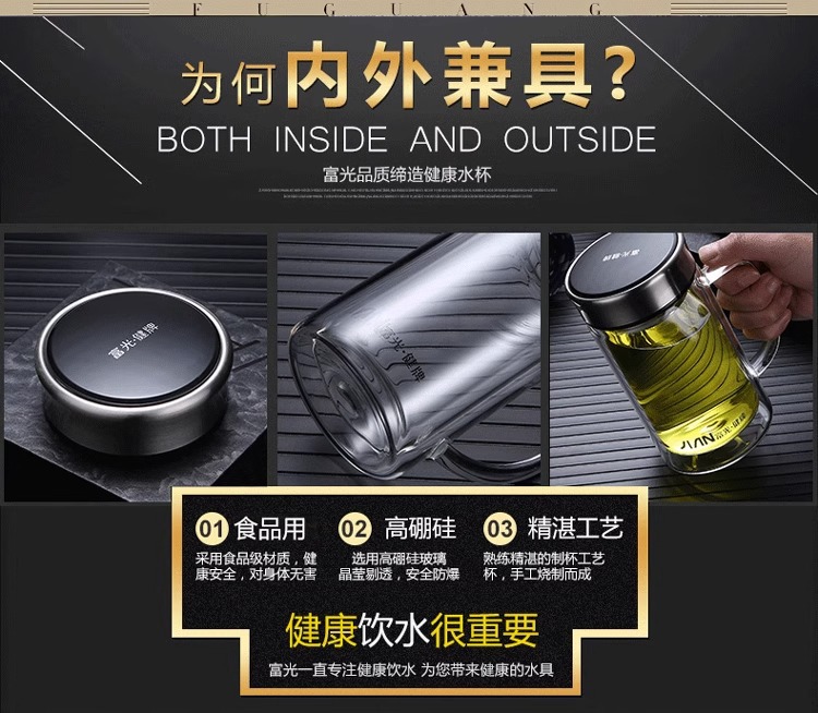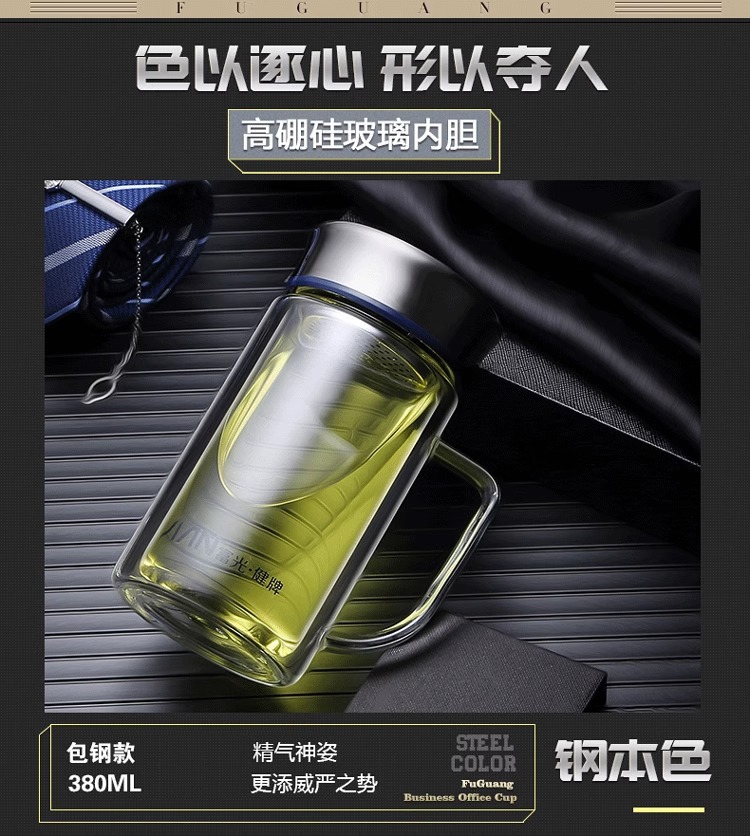 Fuguang Glass 남자 2 층 대용량 절연 차 컵 뚜껑 손잡이 사무실 필터 컵 레터링