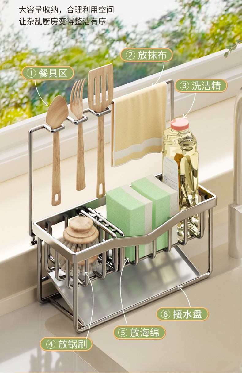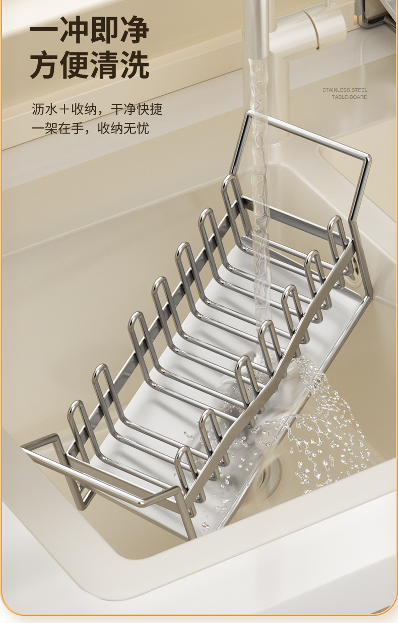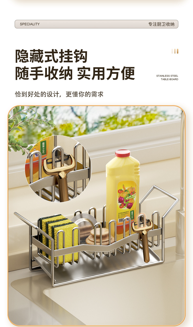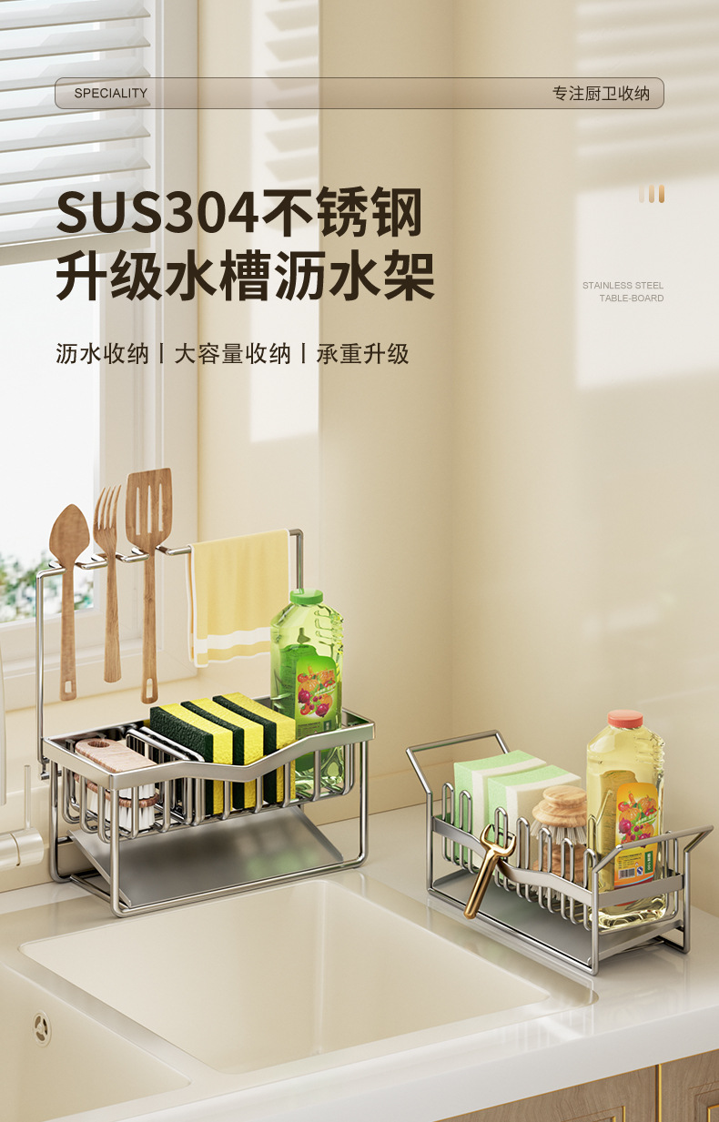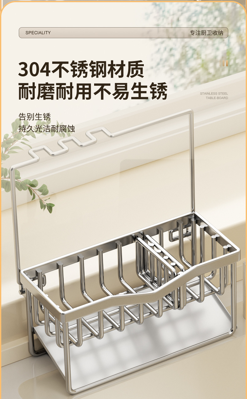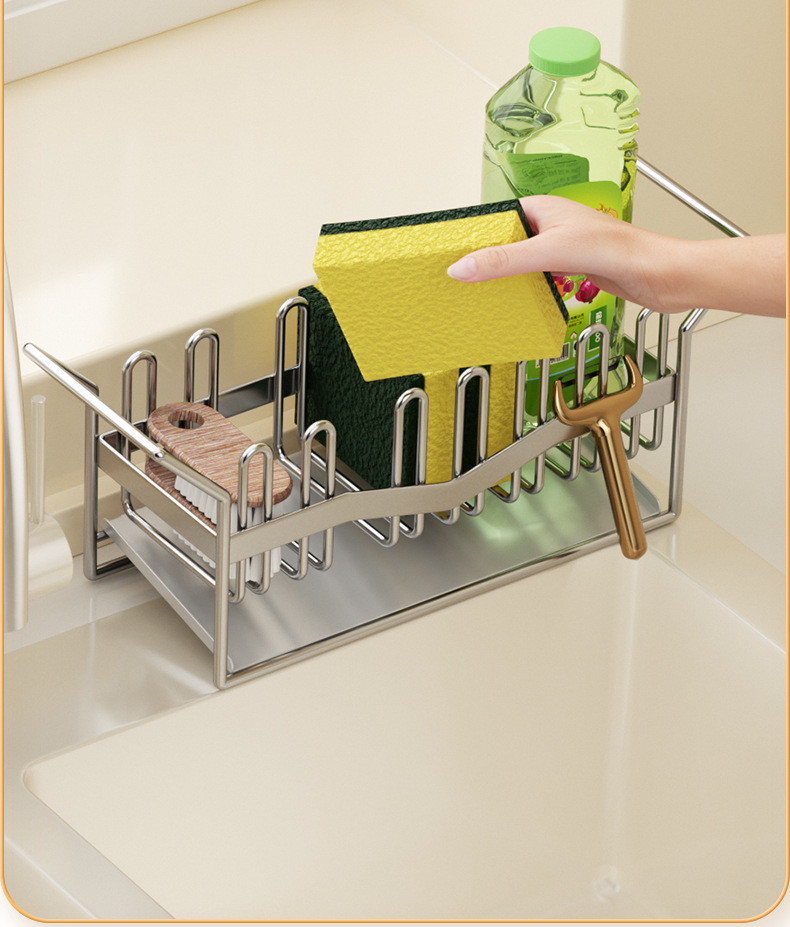 304 스테인리스 스틸 스펀지 건조대 싱크대 주방세제 걸이형 바구니 주방세제 보관대 주방 정리함