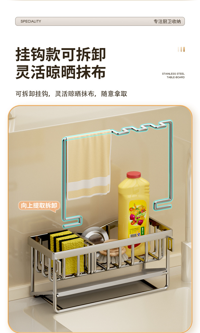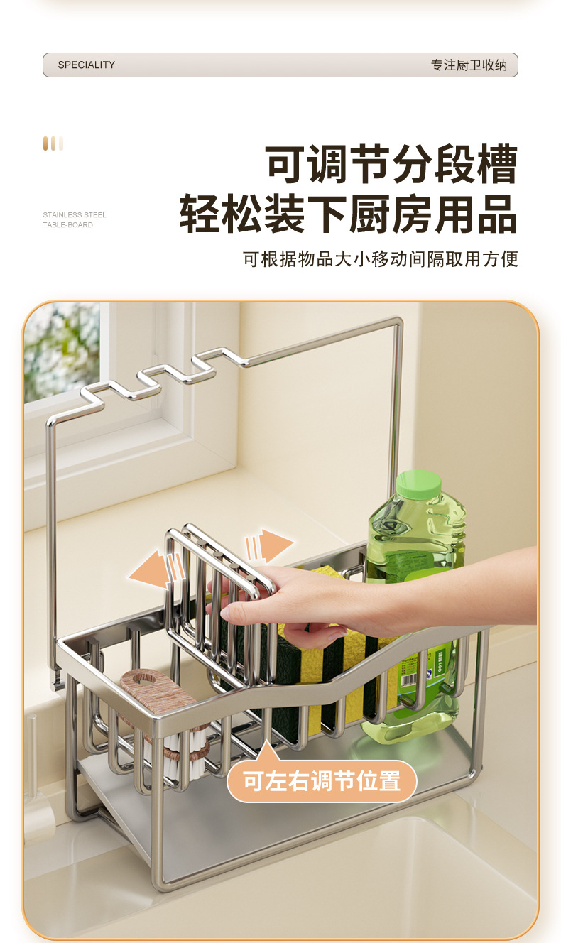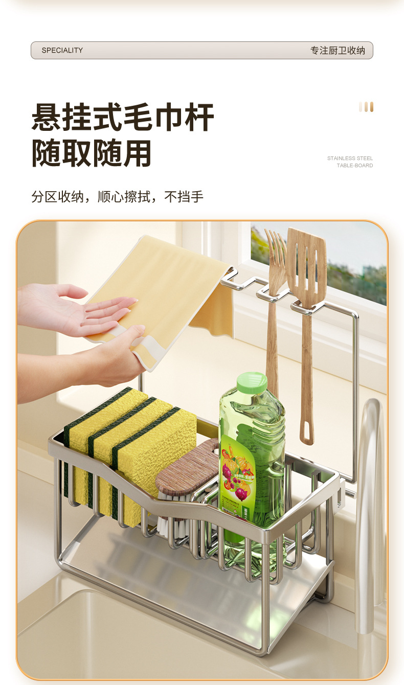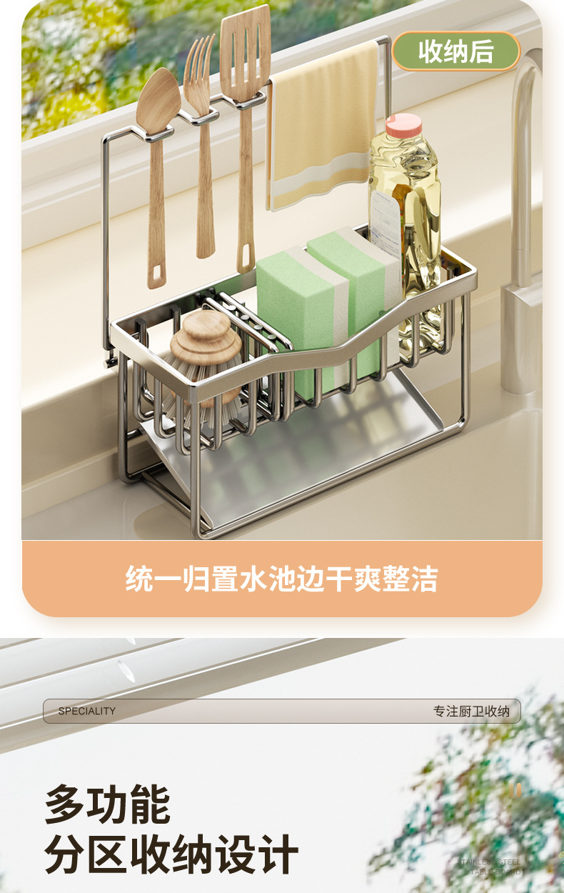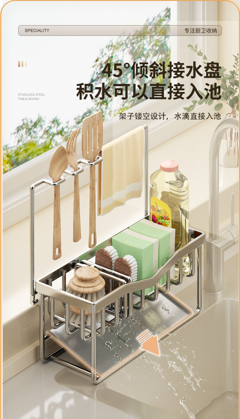 304 스테인리스 스틸 스펀지 건조대 싱크대 주방세제 걸이형 바구니 주방세제 보관대 주방 정리함