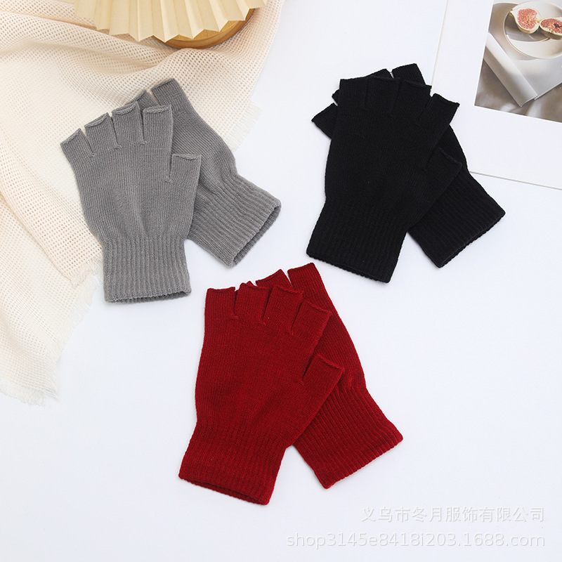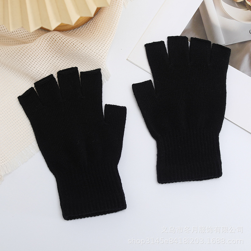 하프 핑거 장갑 여성용 가을과 겨울 따뜻한 스트레치 운전 사이클링 작업 남성용 핑거프리 짧은 반 섹션 장갑