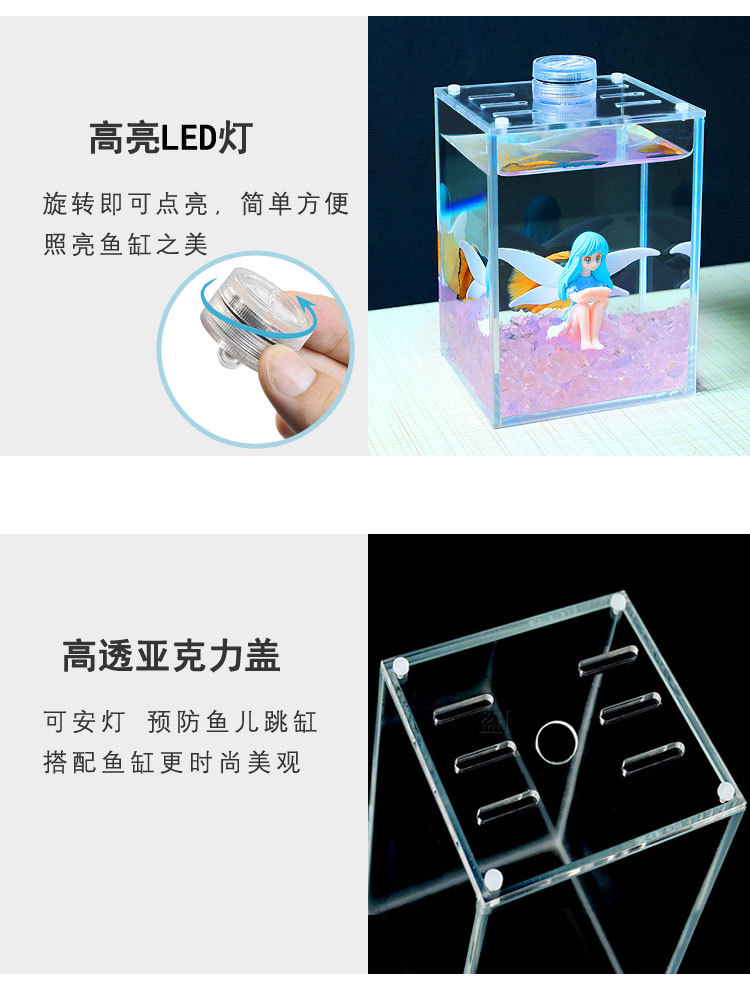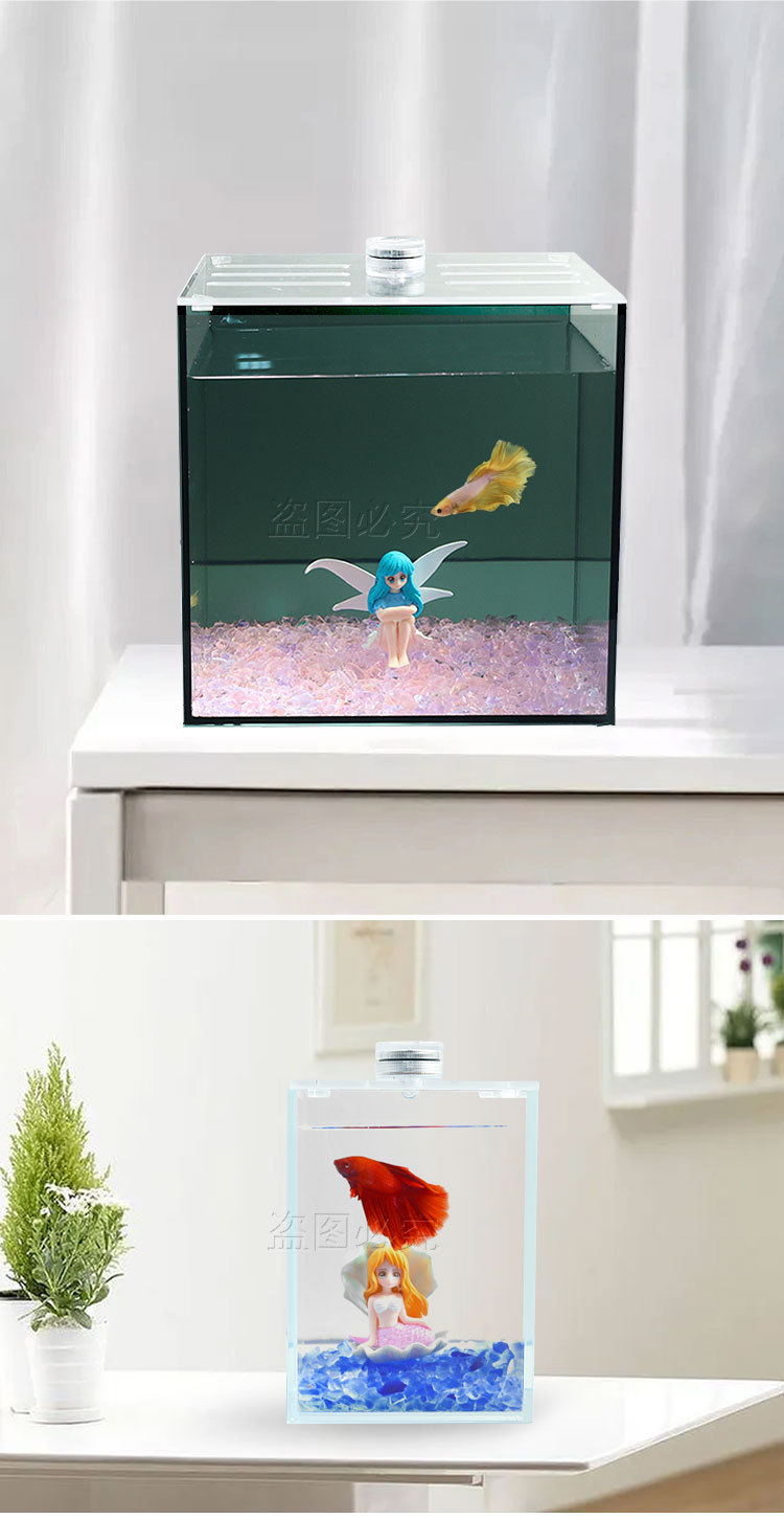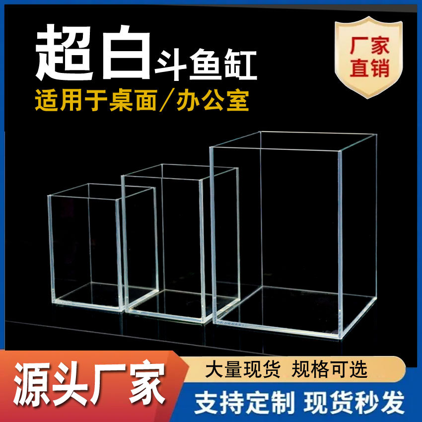 버킷 어항 슈퍼 화이트 유리 탱크 투명 격리 상자 데스크탑 작은 사무실 데스크탑 미니 슈퍼 화이트 어항