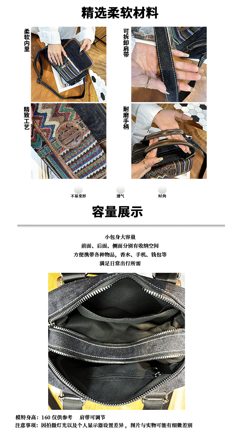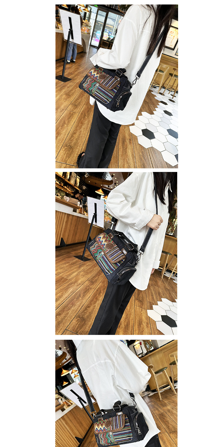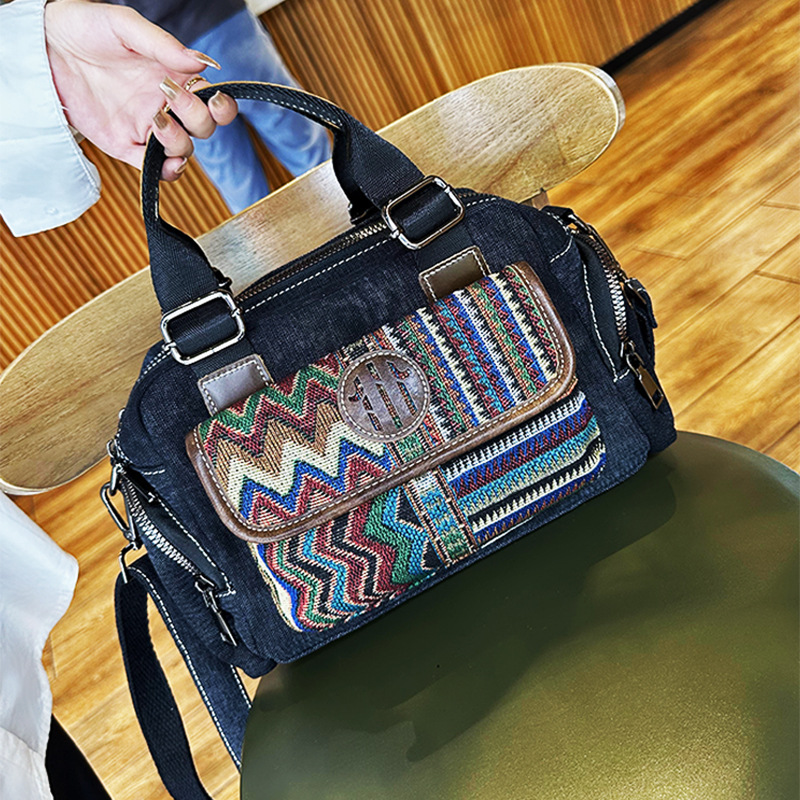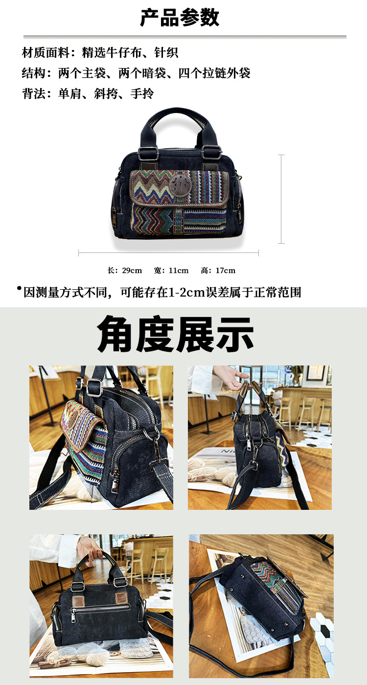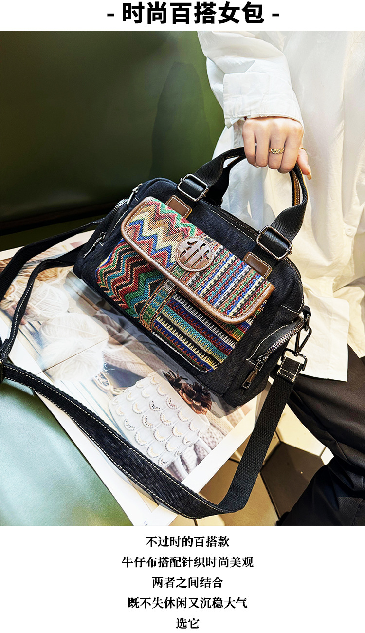 빈티지 데님 캔버스 가방 에스닉 자수 와 소가죽 숙녀 핸드백 메신저 가방 [가격 제한 128 위안]