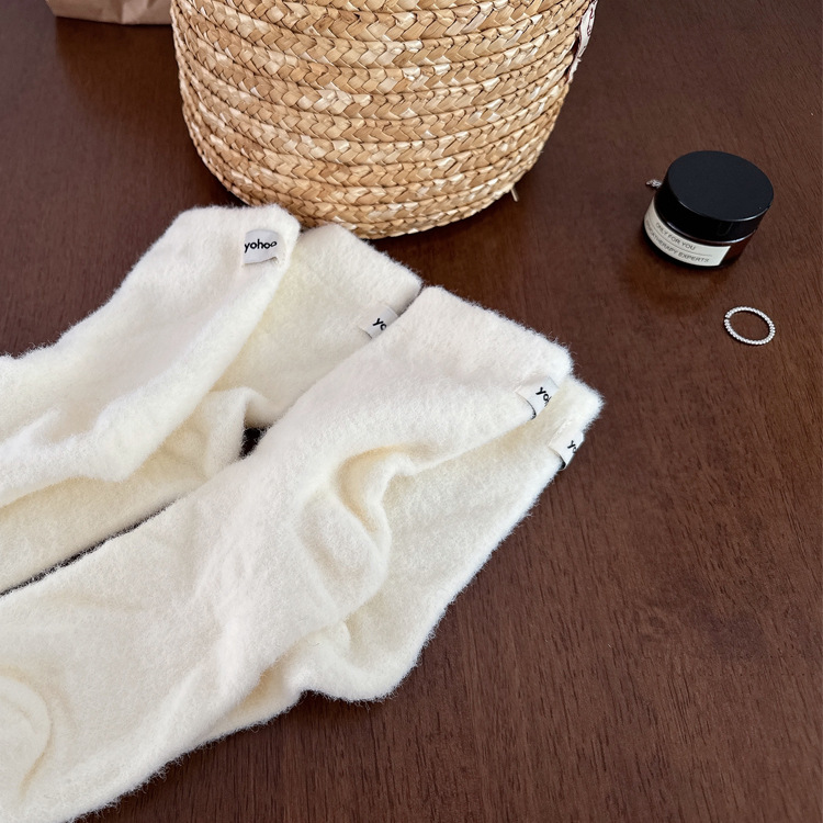 겨울 두꺼운 양말 한국 yohoo 뒤꿈치 천 라벨 따뜻한 튜브 양말 모조 밍크 벨벳 겨울 여성 양말 sakagiya스토어 가기