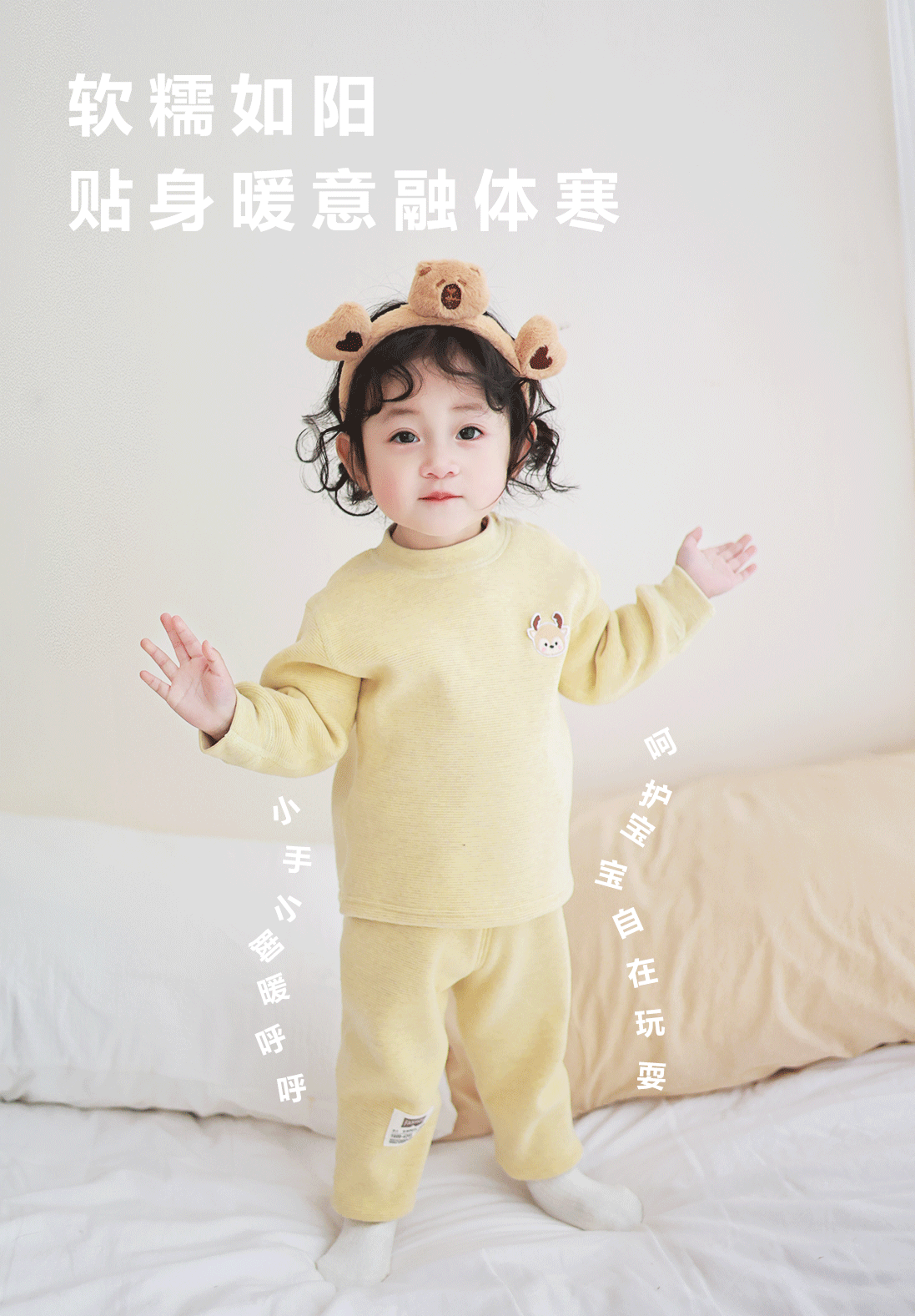 가을 새 어린이 속옷 세트 기모 면 양털 아기 소년과 소녀 가을 옷과 바지 두꺼운 따뜻한 가정 옷스토어 가기