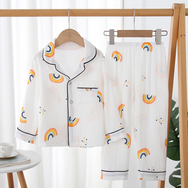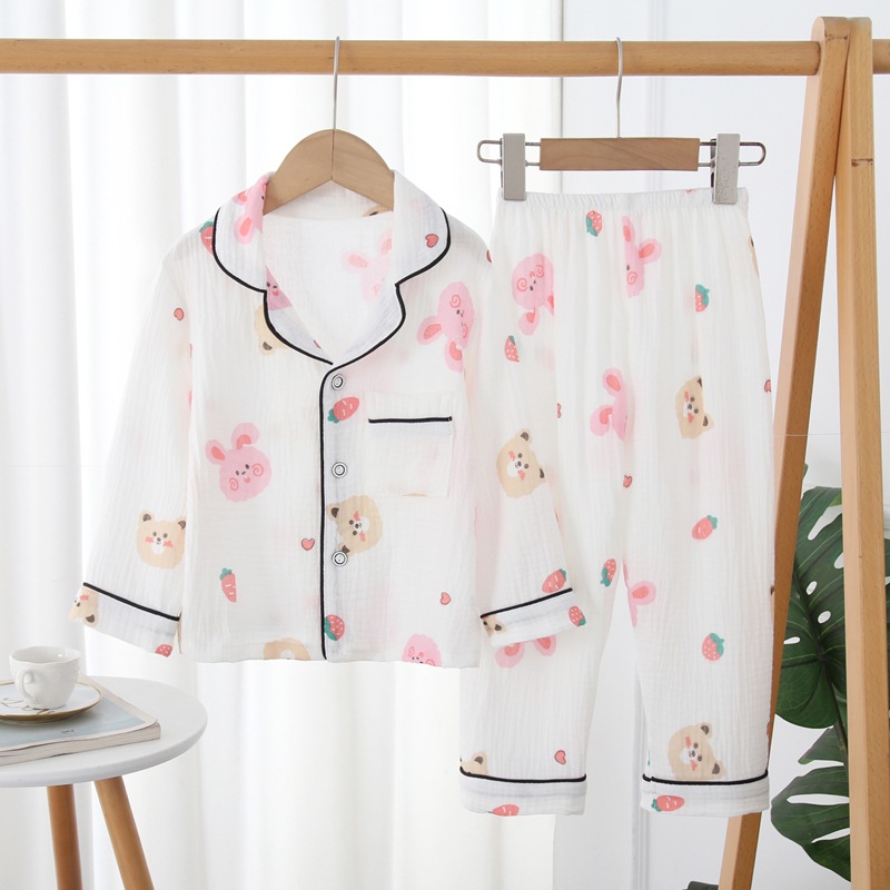 봄과 가을 어린이 더블 코튼 원사 잠옷 만화 긴 소매 가디건 세트 소년 소녀 가정 의류 에어컨 의류 대외 무역스토어 가기