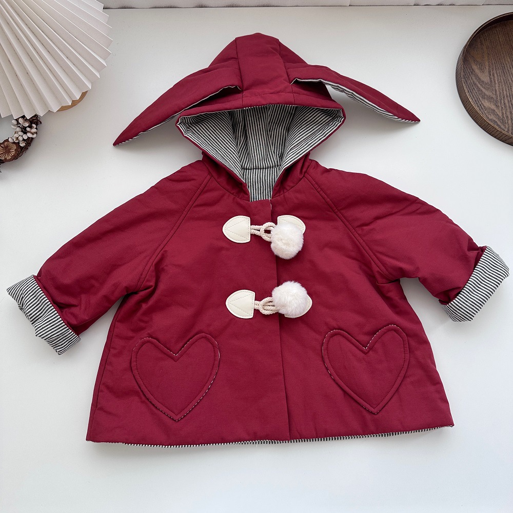 가을과 겨울 새 크리스마스 새해 귀여운 토끼 볼 코트 사랑 포켓 코트 소년과 소녀를위한 겨울스토어 가기