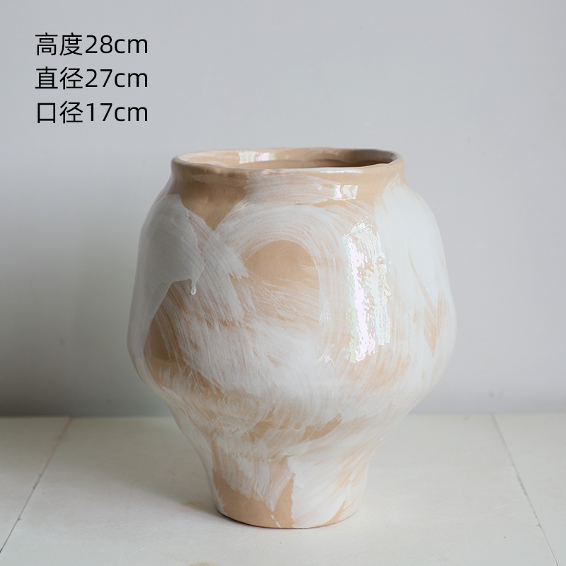 현대 간단한 흑백 물방울 무늬 도자기 냄비 화병 모델 룸 소프트 피팅 판매 홈스테이 장식 세라믹 꽃병 고급스토어 가기