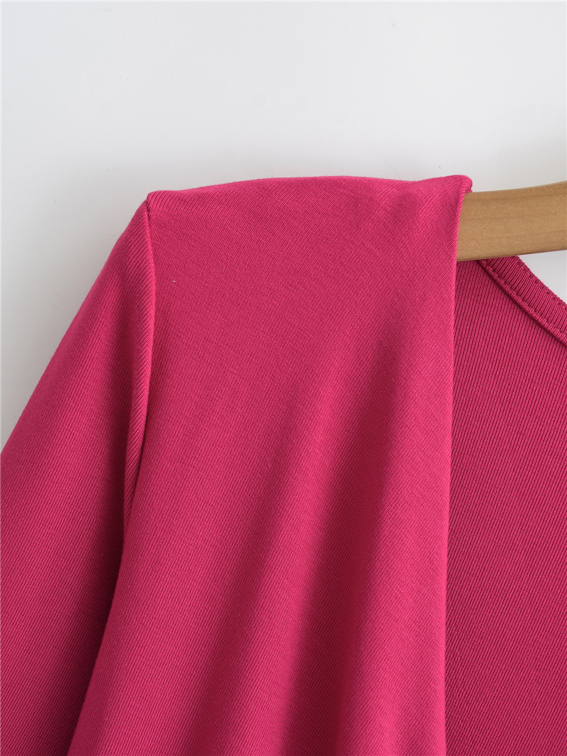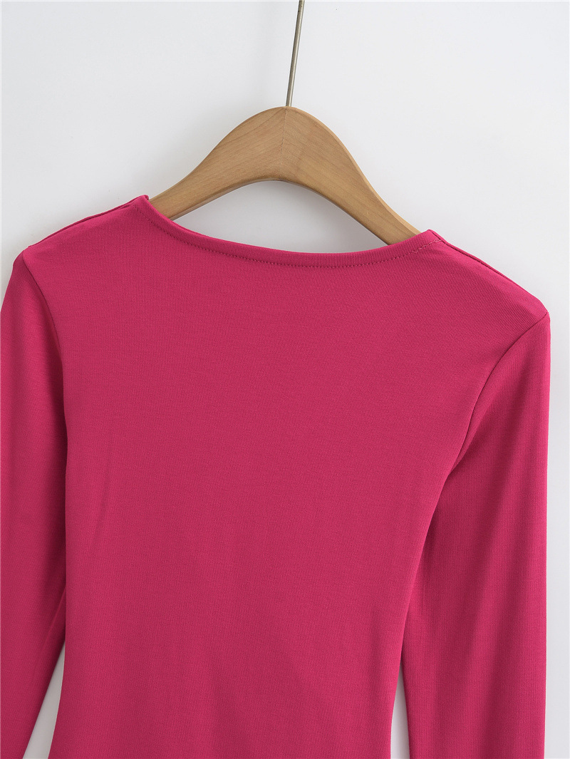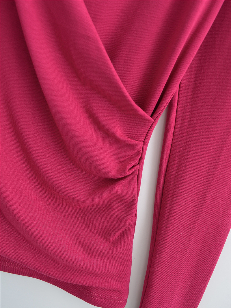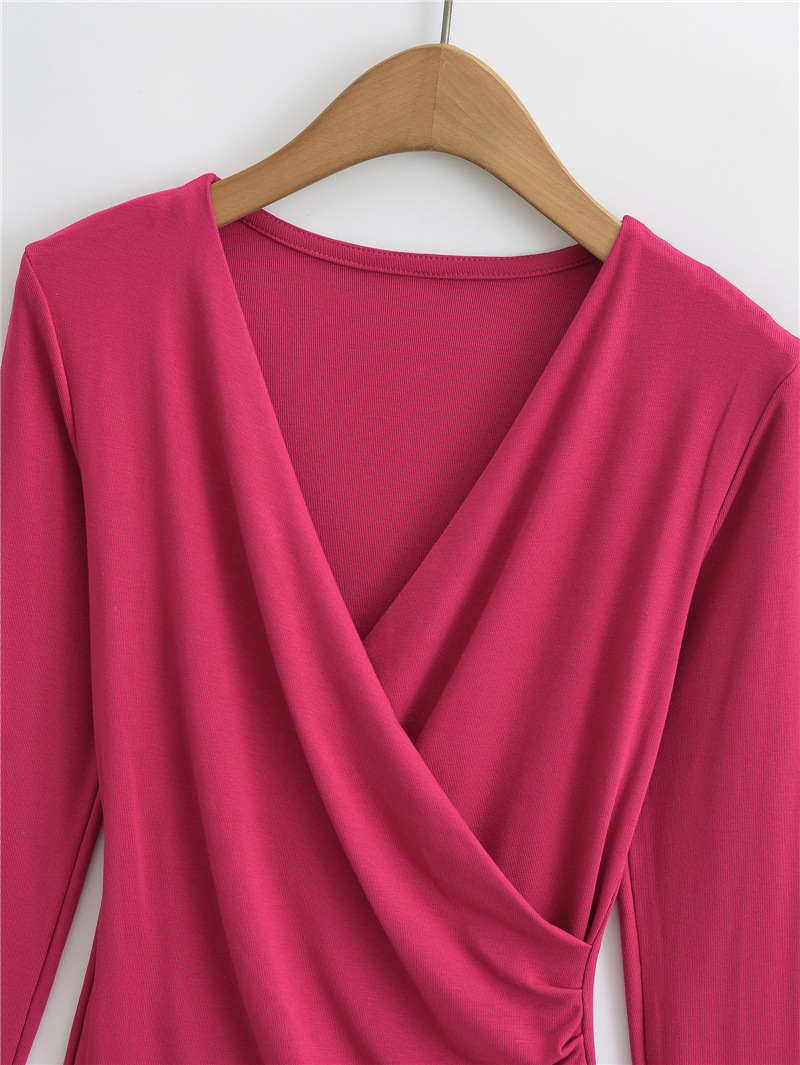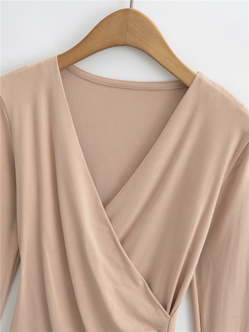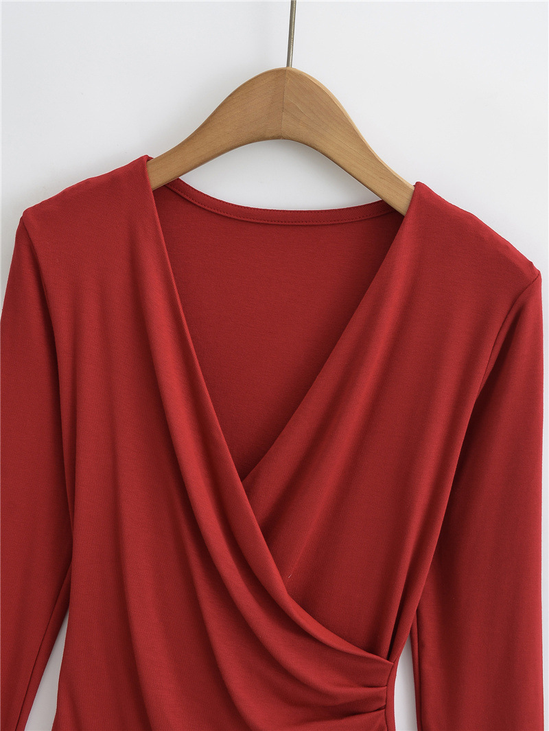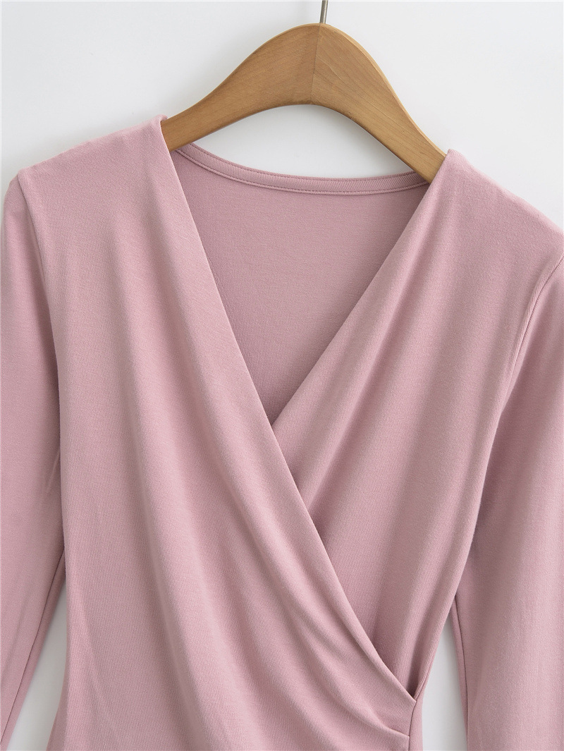 유럽과 미국 스타일 스파이스 걸스 섹시 크로스 딥 브이넥 긴팔 티셔츠 가을 새로운 슬림핏 솔리드 컬러 플리츠 하의 여성용 탑스토어 가기