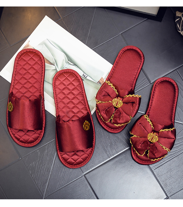 웨딩 슬리퍼 여자의 여름 신부 빨간 축제 빛의 쌍 럭셔리 고급 결혼식 동반 아침 가운 커플 슬리퍼스토어 가기