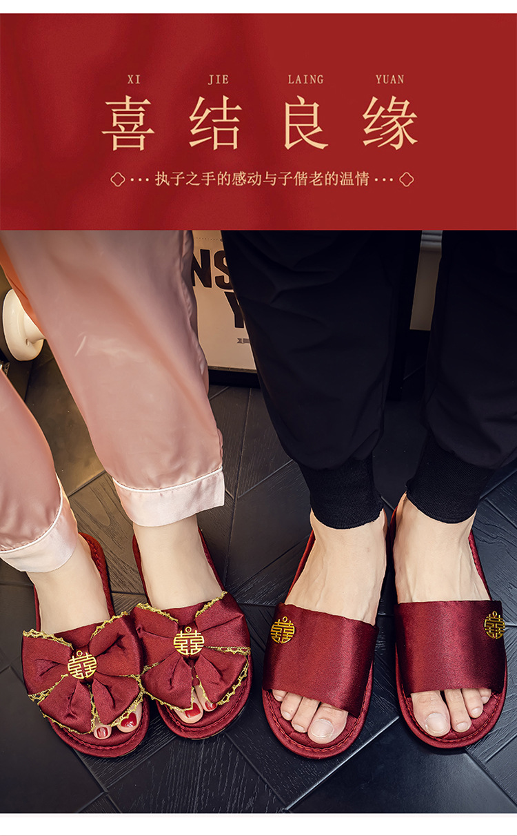웨딩 슬리퍼 여자의 여름 신부 빨간 축제 빛의 쌍 럭셔리 고급 결혼식 동반 아침 가운 커플 슬리퍼