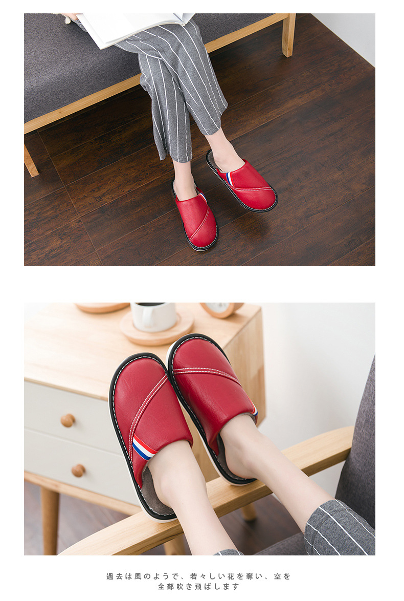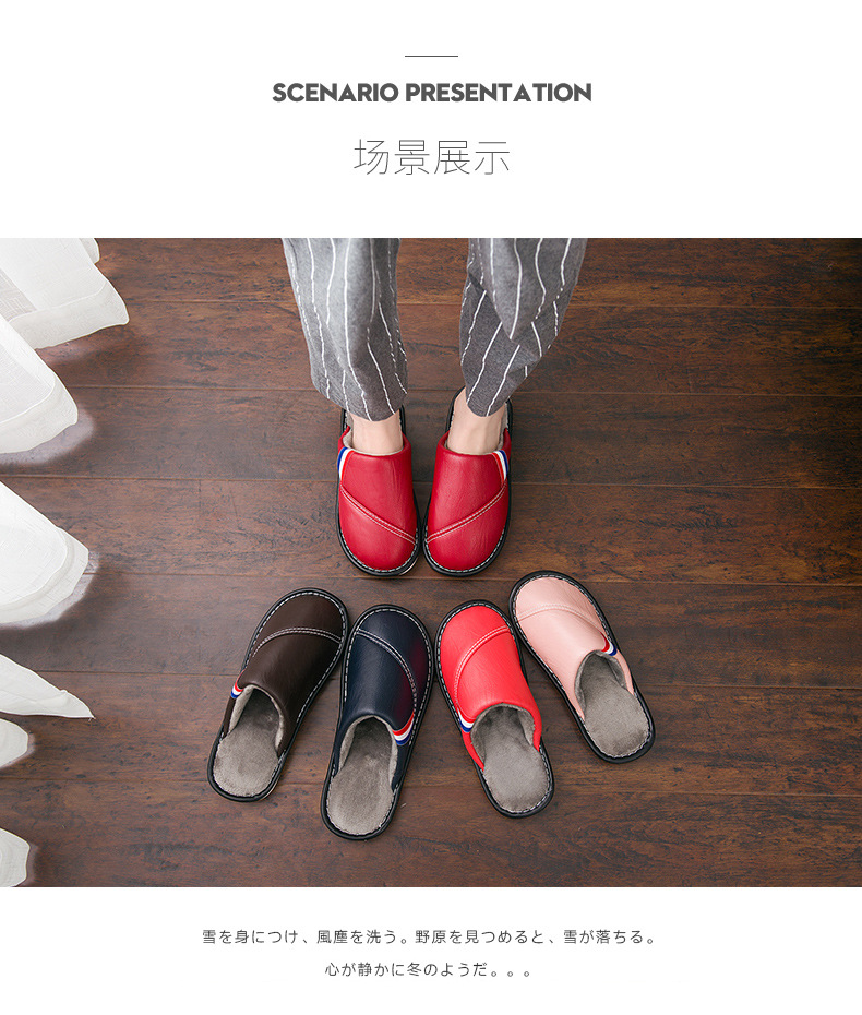 면 슬리퍼 여성용 겨울 커플 가정용 방수 가죽 플러시 따뜻한 면 슬리퍼 단색 미끄럼 방지 PU 가죽 두꺼운 슬리퍼