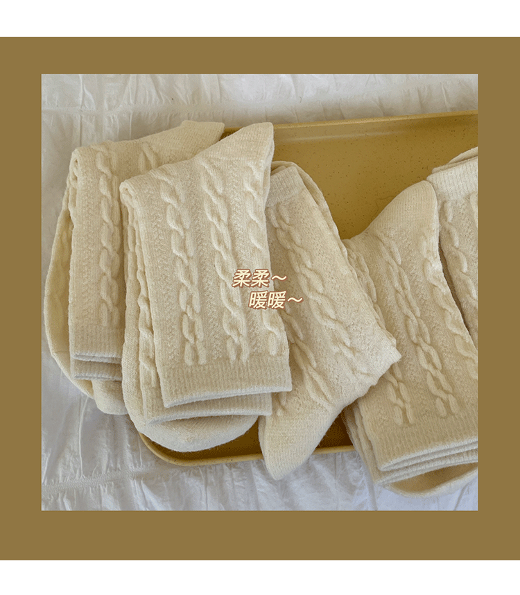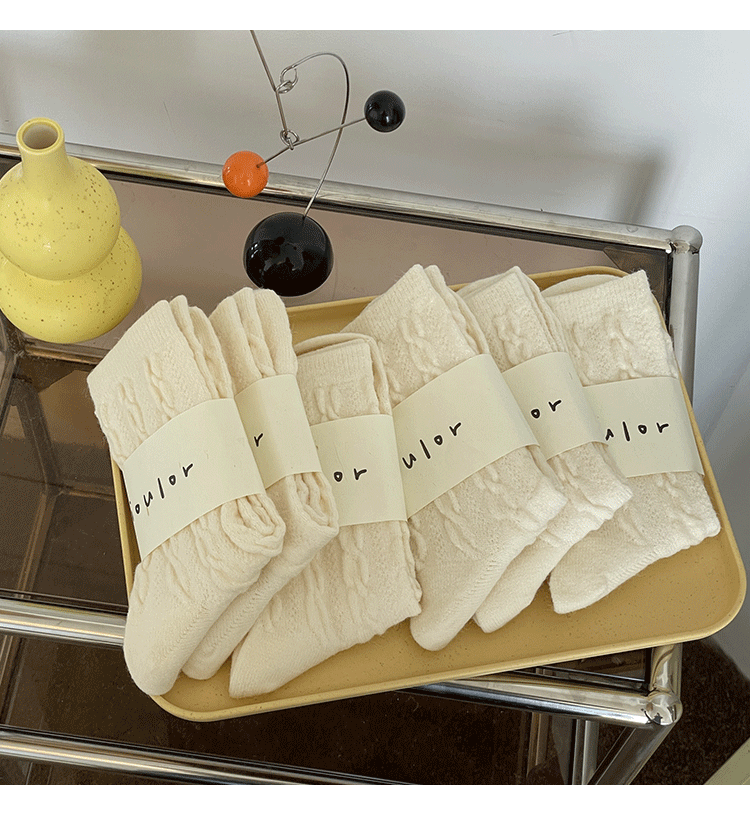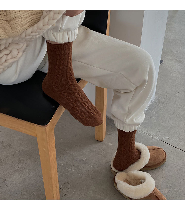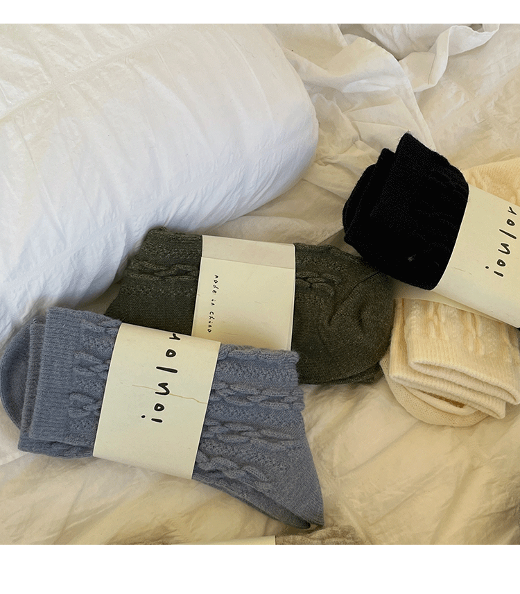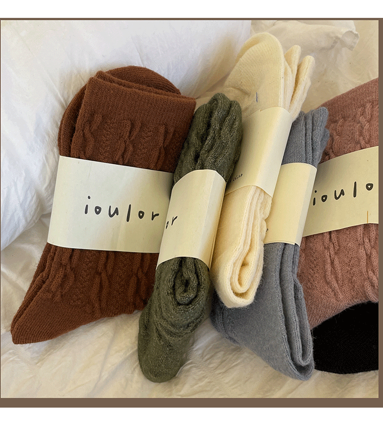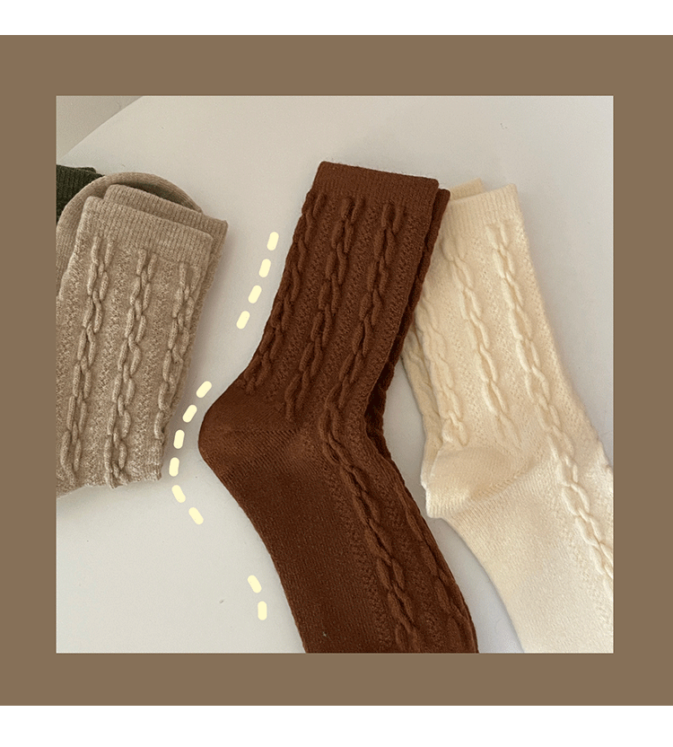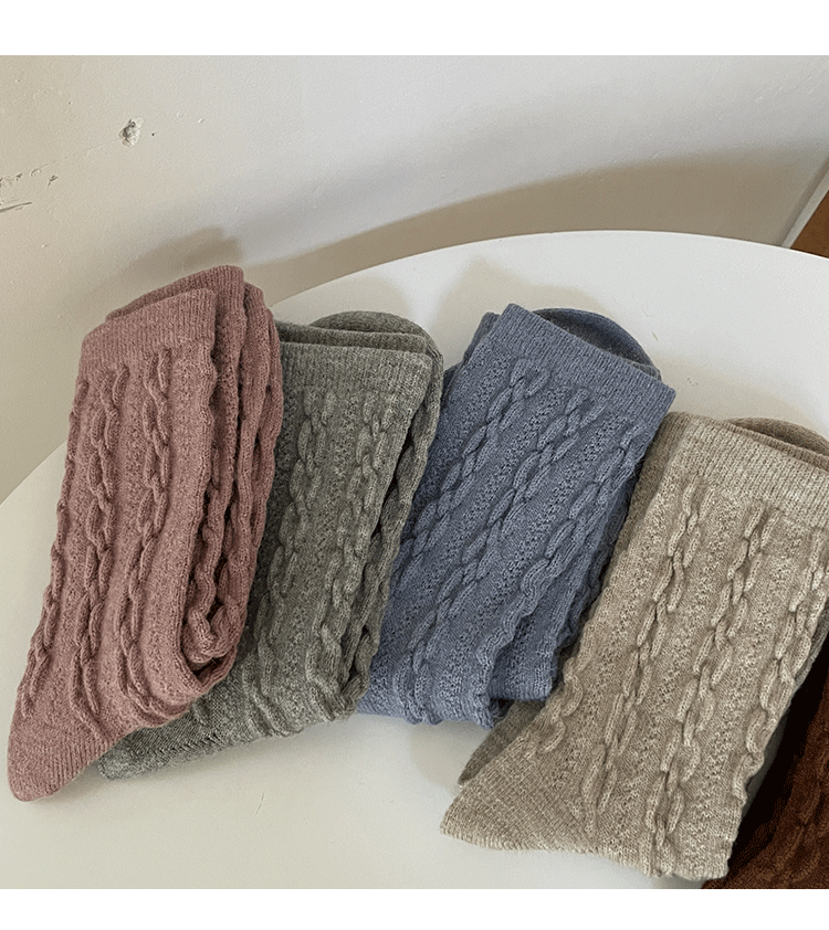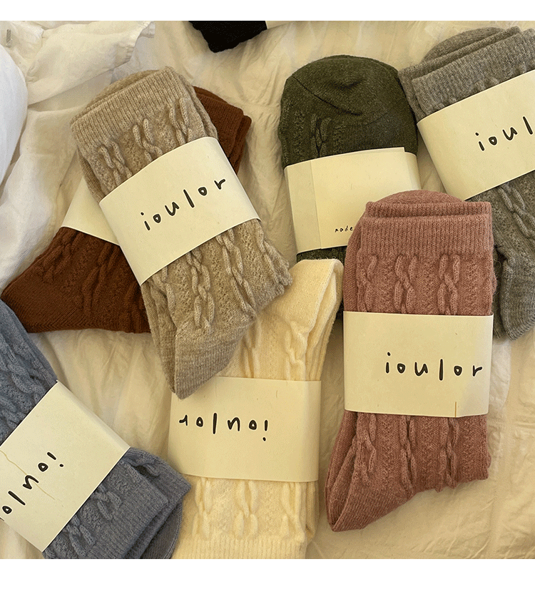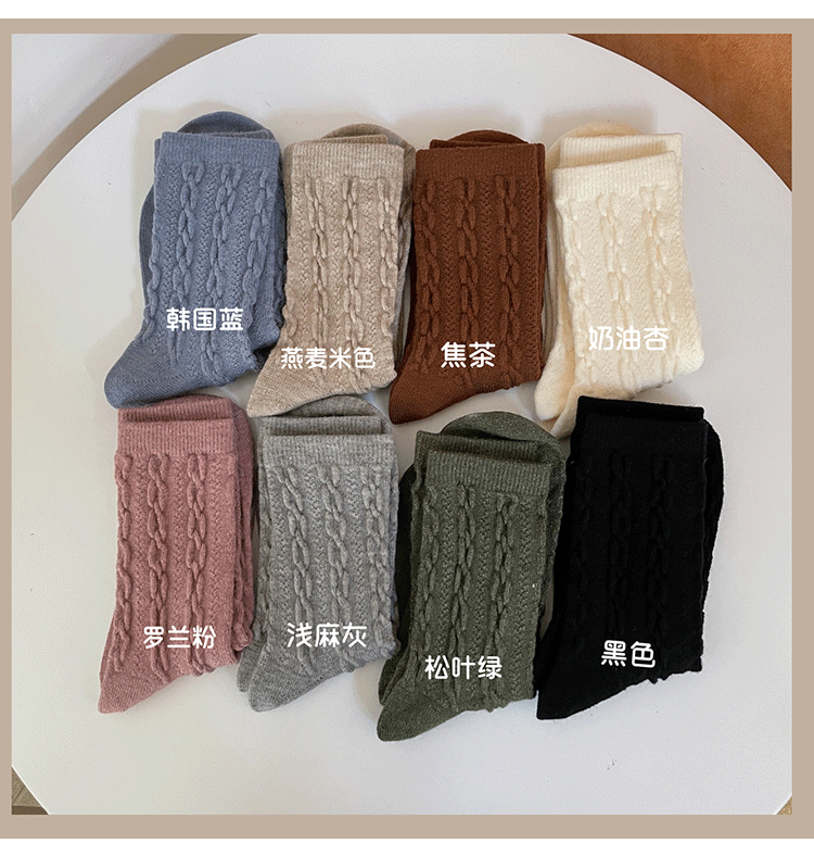 한국 스타일 트위스트 울 양말 여성용 미드 튜브 양말 가을과 겨울 새로운 따뜻한 두꺼운 모든 매치 단색 파일 양말 스타일