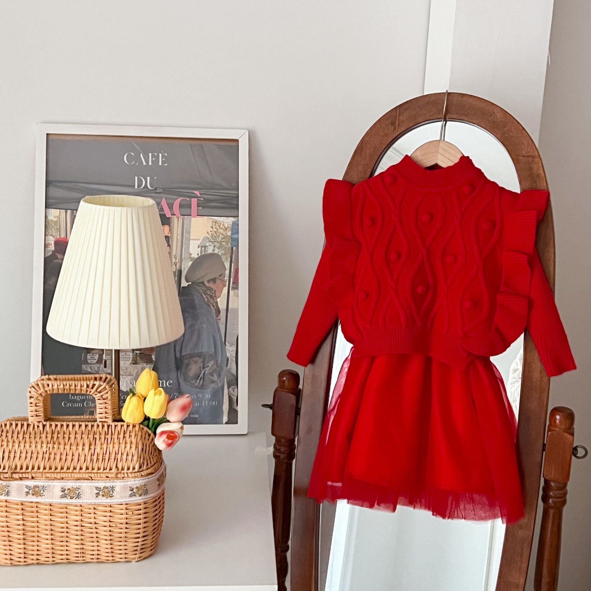 2023 가을과 겨울 어린이 거즈 원피스 공주 원피스 거즈 수제 조끼 2 종 세트 여성의 보물 패션 원피스