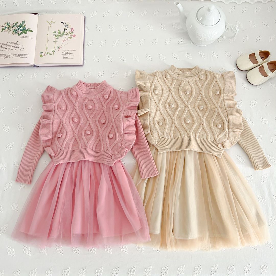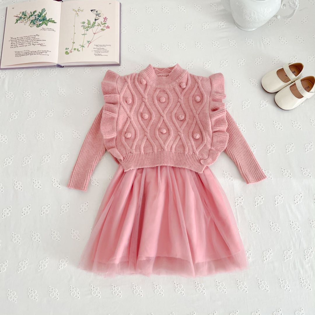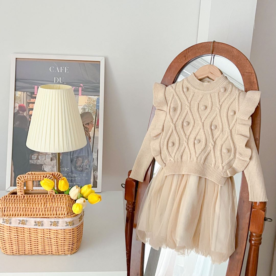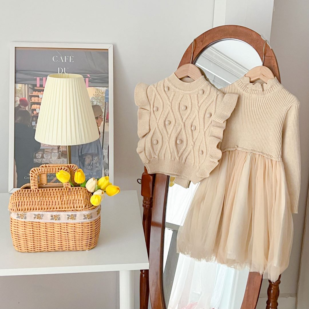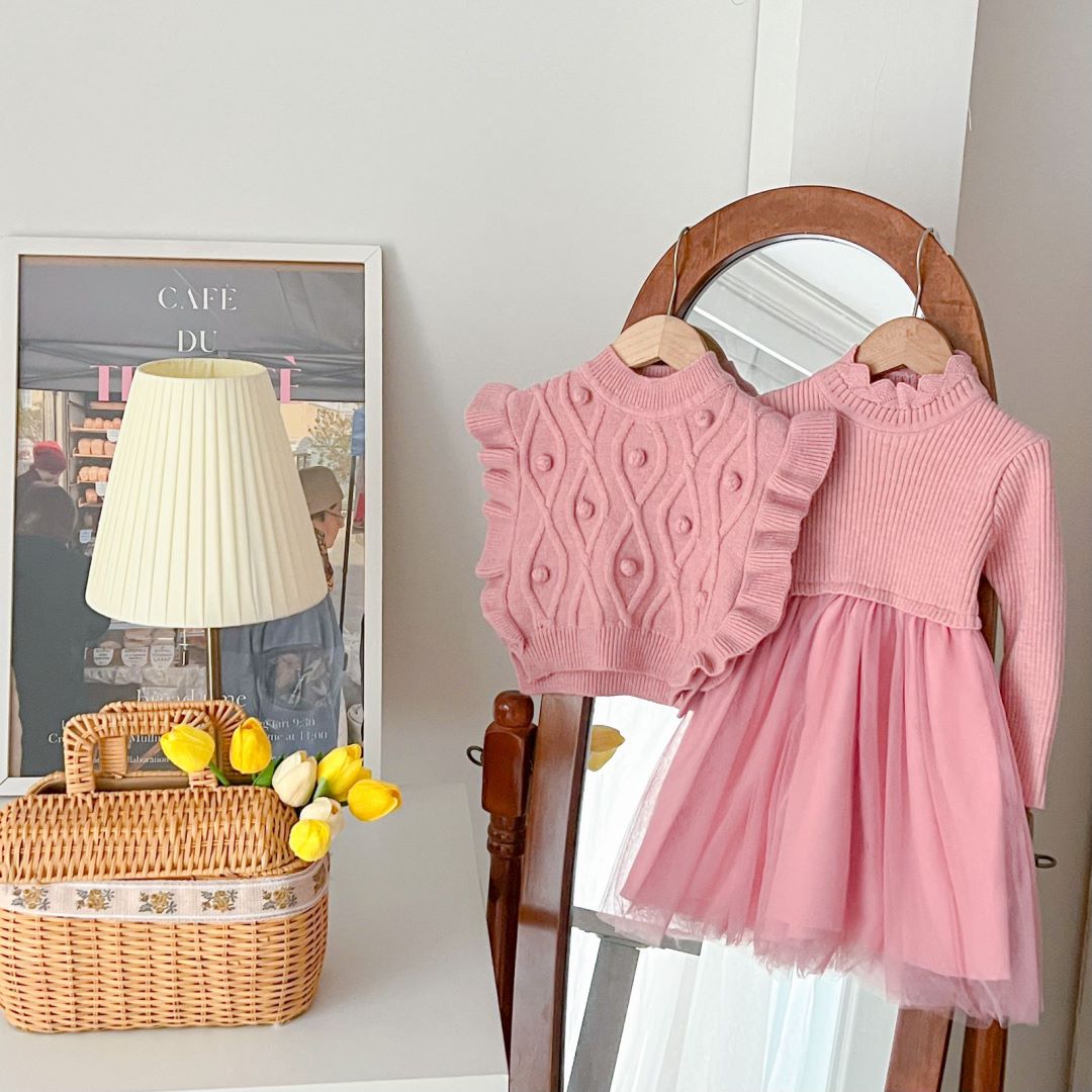 2023 가을과 겨울 어린이 거즈 원피스 공주 원피스 거즈 수제 조끼 2 종 세트 여성의 보물 패션 원피스스토어 가기