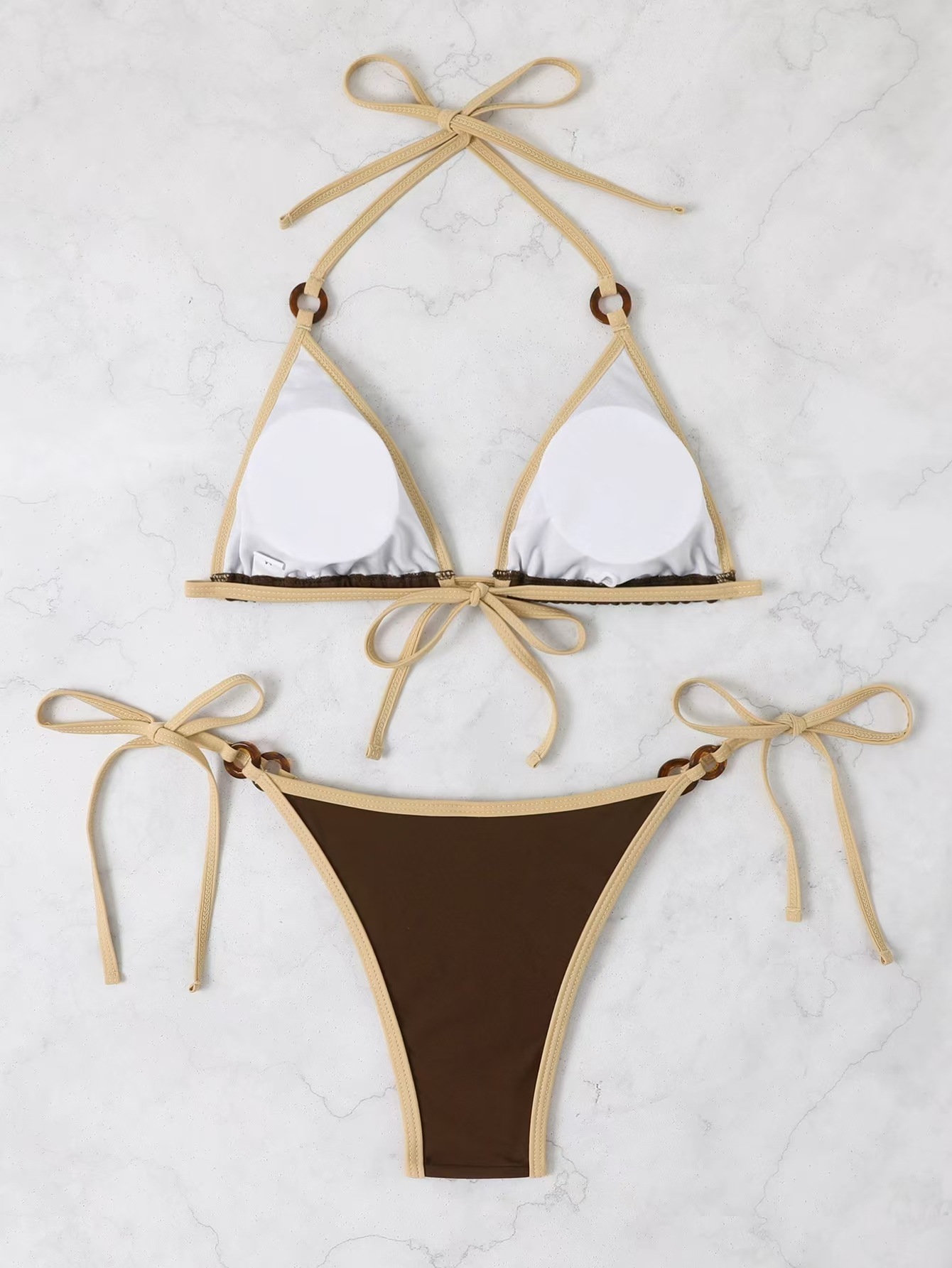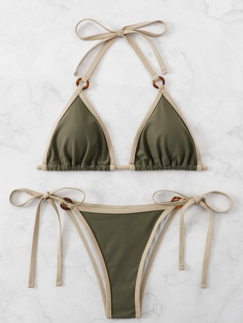 2025 새로운 유럽과 미국의 섹시한 대외 무역 국경 단색 분할 비키니 스트랩 숙녀 수영복 제조 업체 도매스토어 가기
