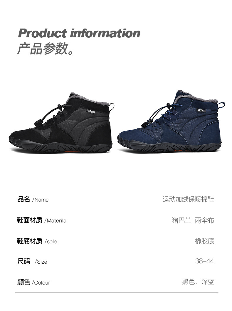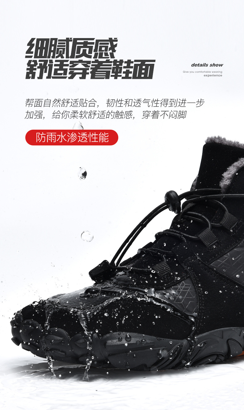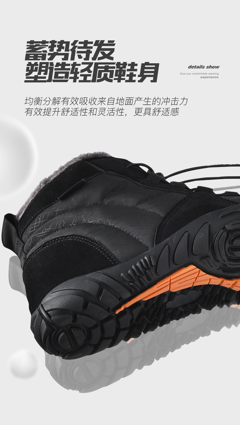 새로운 다섯 손가락 면화 신발 야외 스포츠 남성과 여성의 기모 따뜻한 부츠 내마모성 미끄럼 방지 스노우 부츠 두꺼운 연인 신발