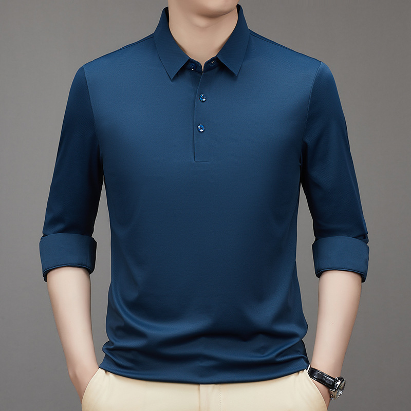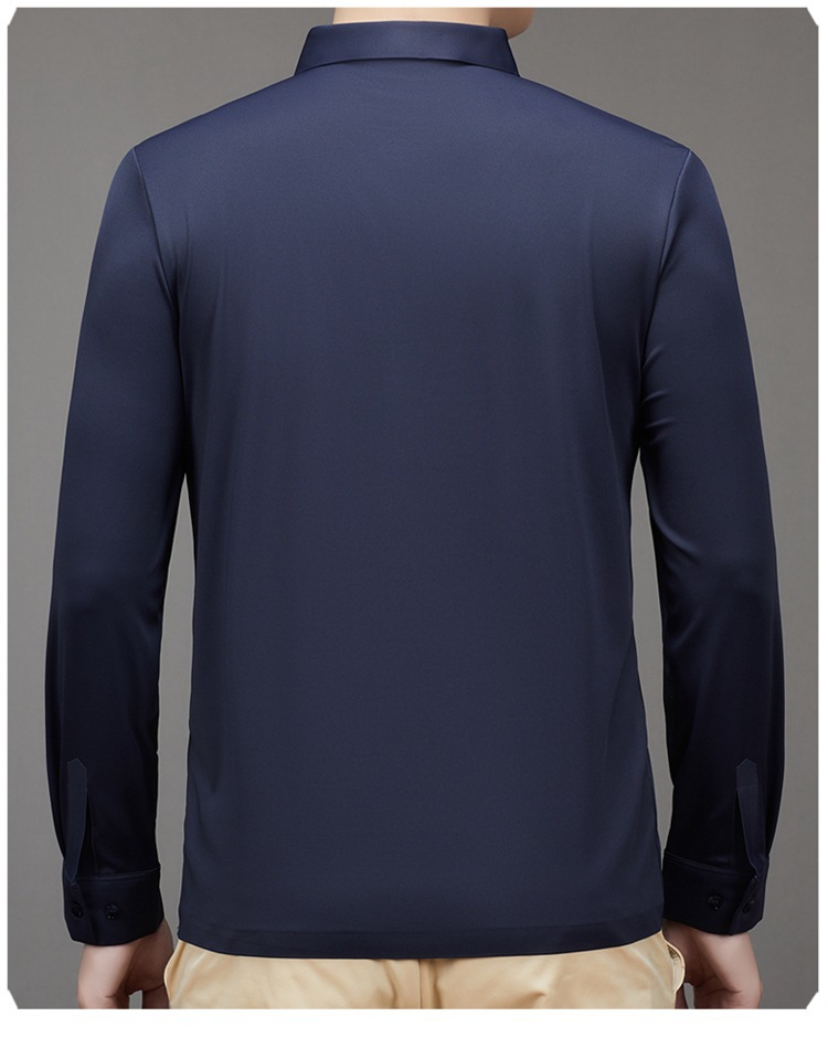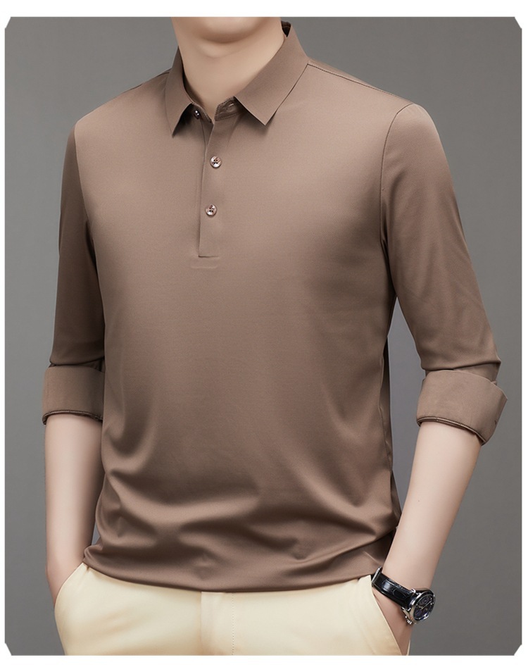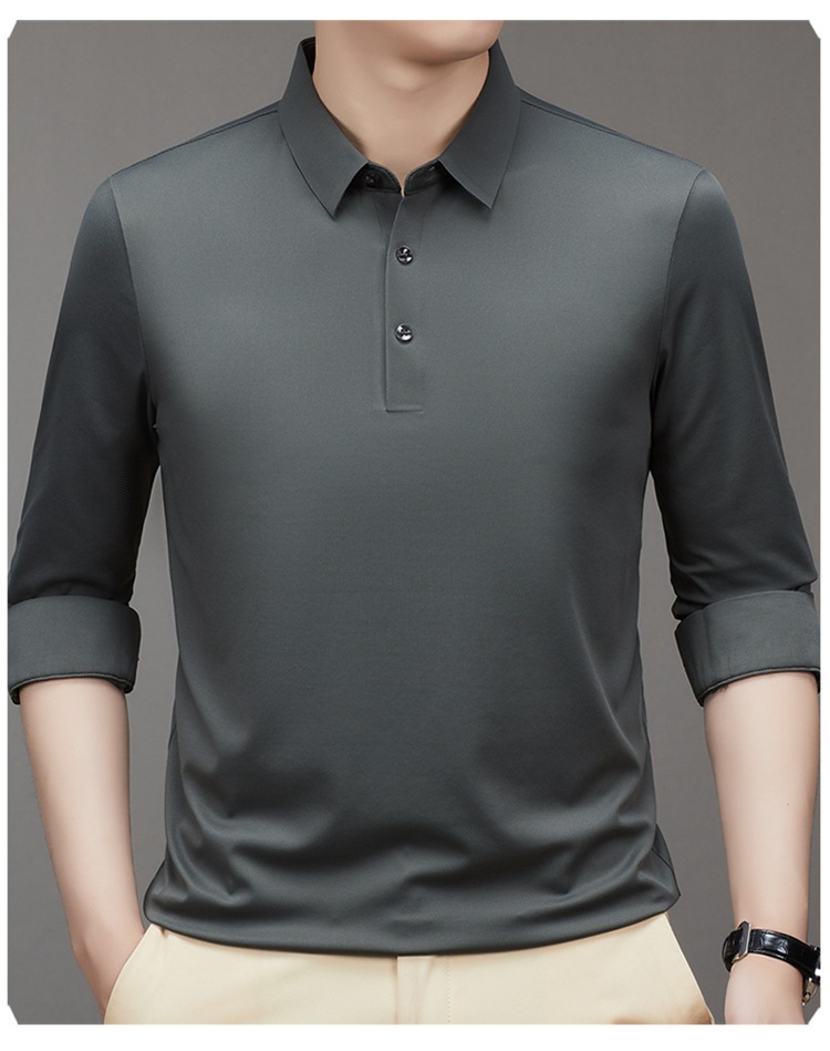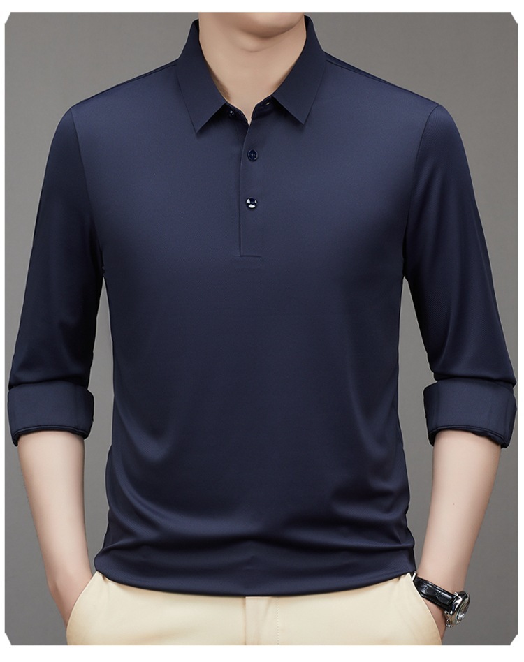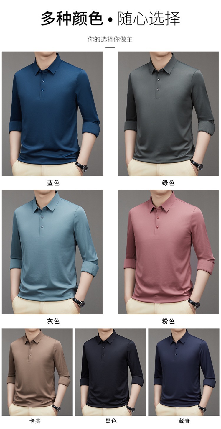 桑蚕丝男士T恤2023秋季清爽舒适中年免烫中年爸爸装长袖精品上衣