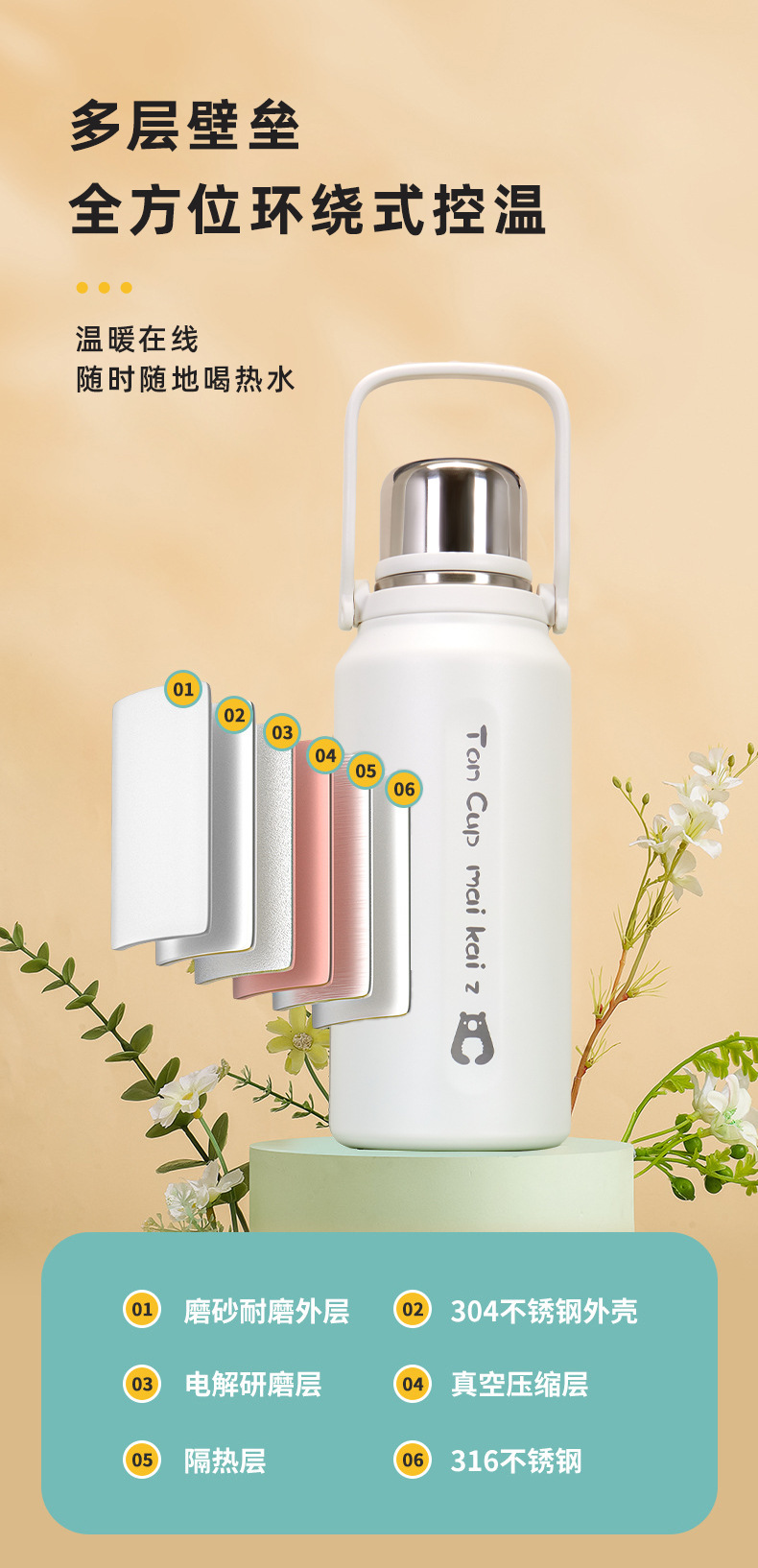크로스보더 316 스테인리스 보온병 컵 대용량 야외 손잡이 여행 찻주전자 스포츠 주전자 큰 배 컵스토어 가기