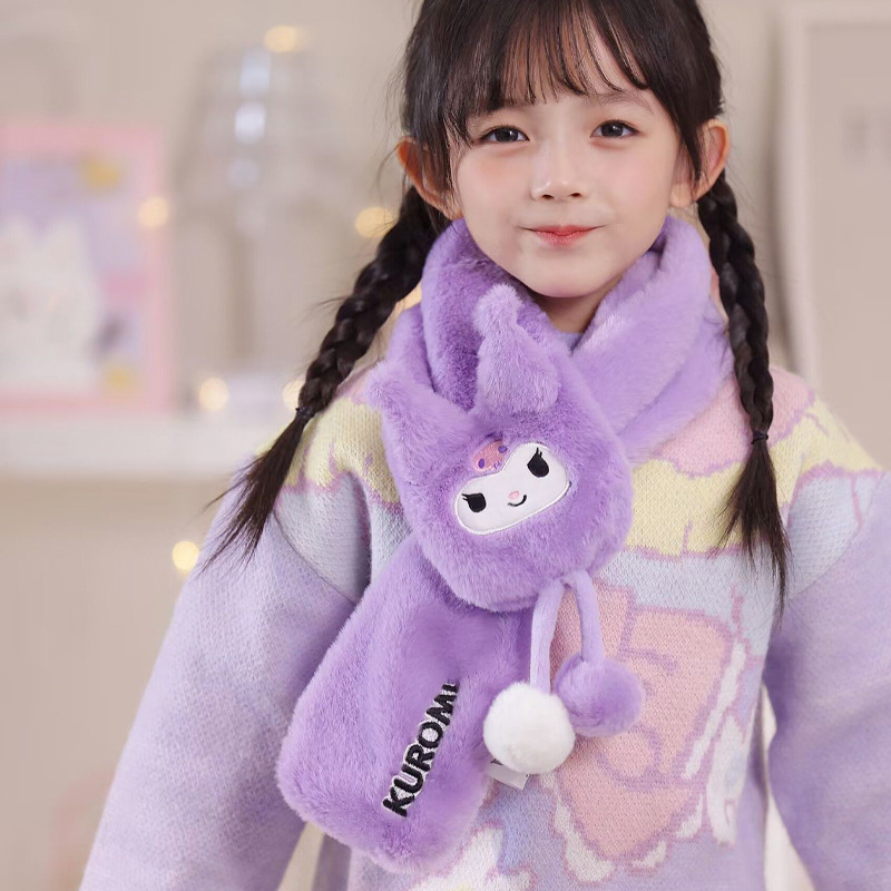 달콤한 귀여운 만화 Kulomi 보라색 어린이 스카프 가을과 겨울 따뜻한 봉제 스카프 선물 방한 목 보호 새로운