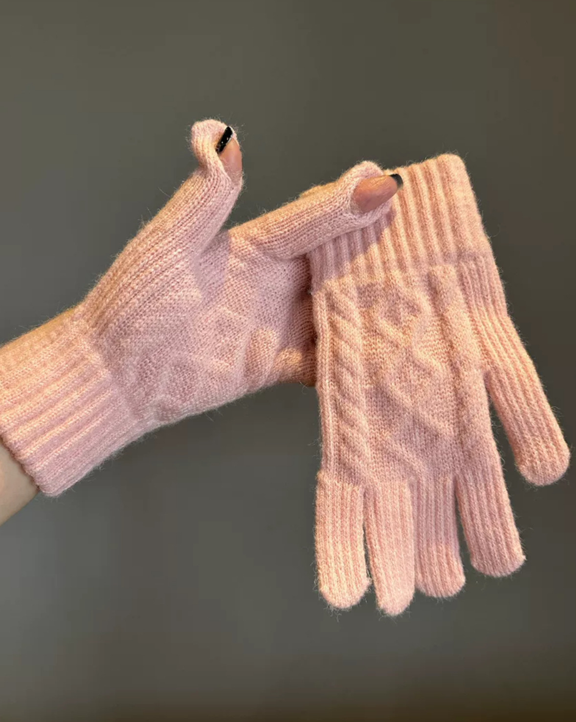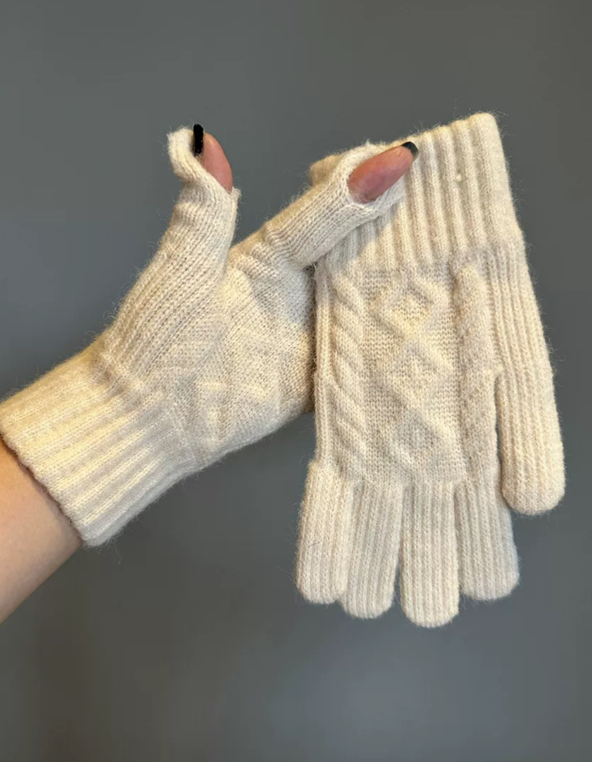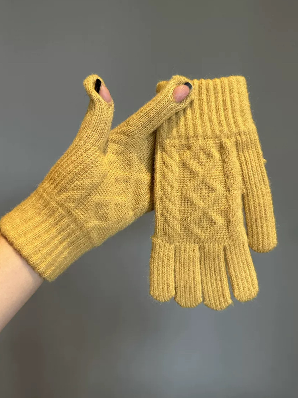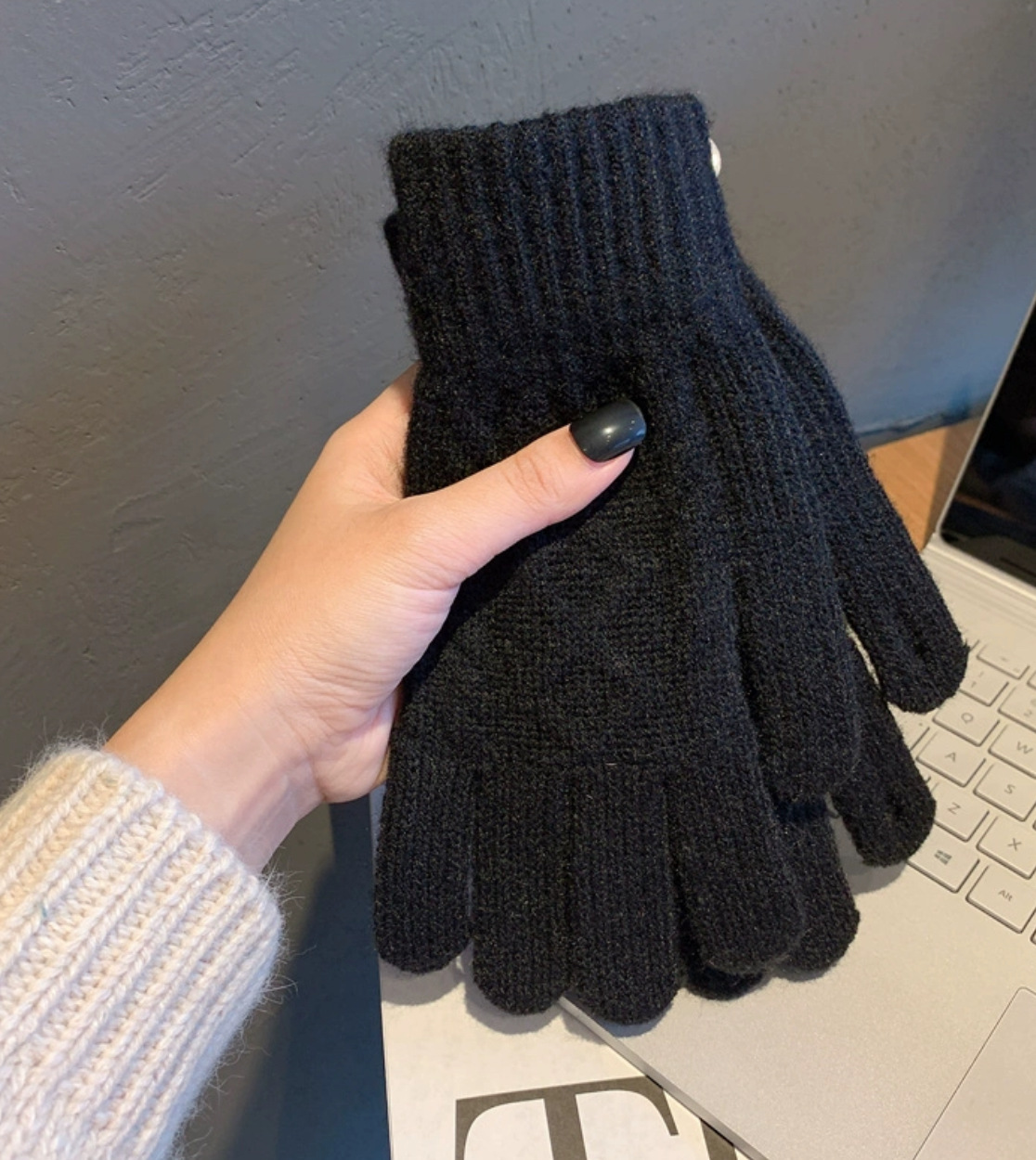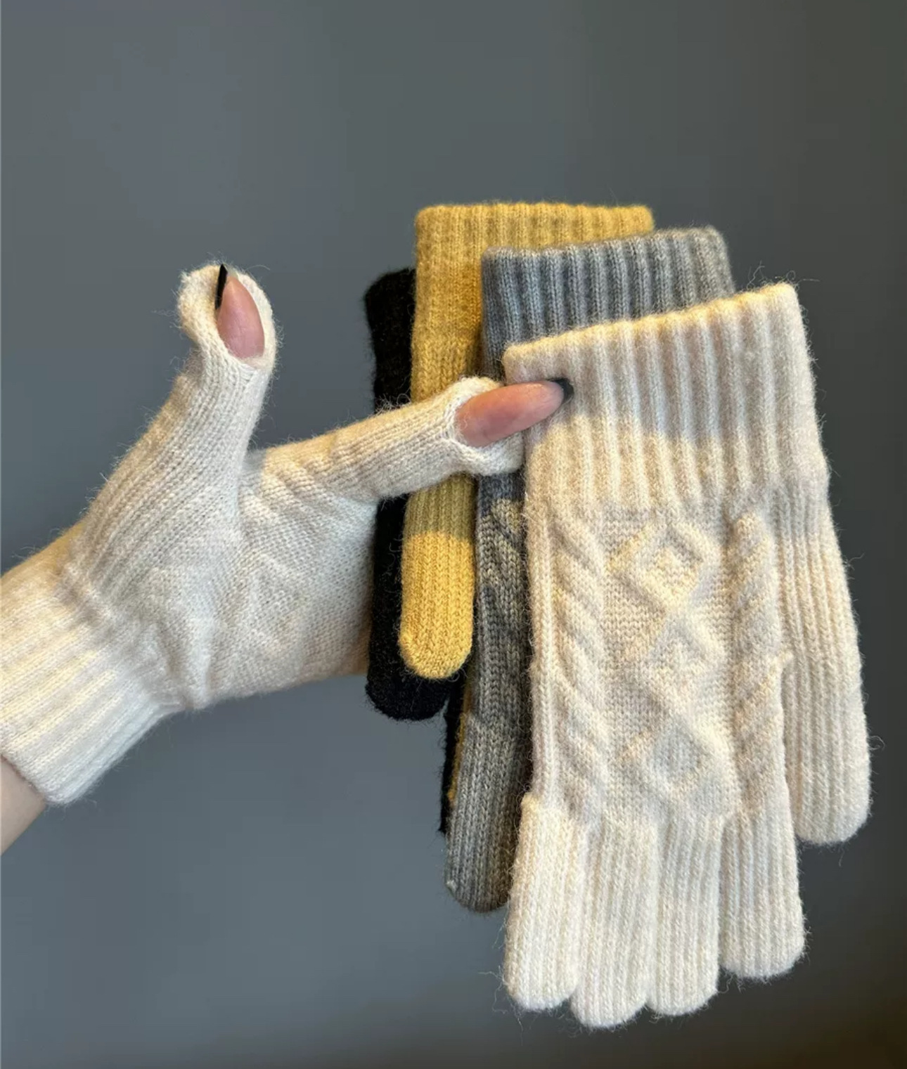 겨울 성인 따뜻한 장갑 노출 두 손가락 터치 스크린 장갑 야외 방한 니트 자카드 울 단색 장갑