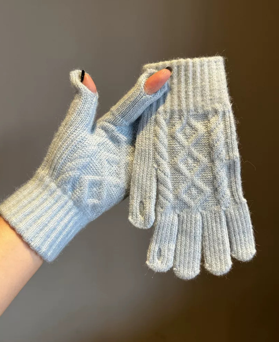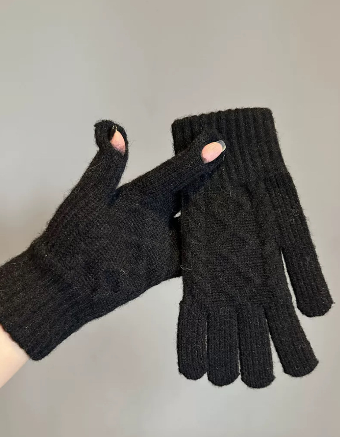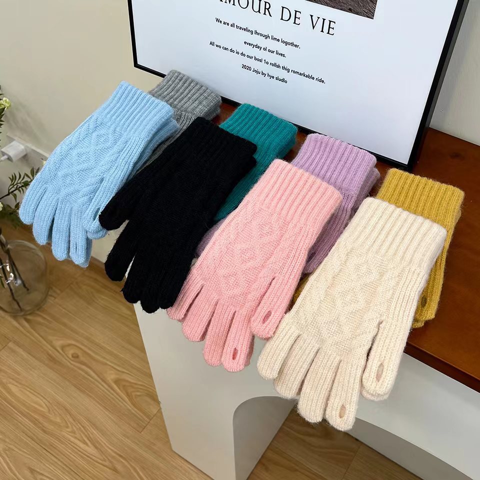 겨울 성인 따뜻한 장갑 노출 두 손가락 터치 스크린 장갑 야외 방한 니트 자카드 울 단색 장갑스토어 가기