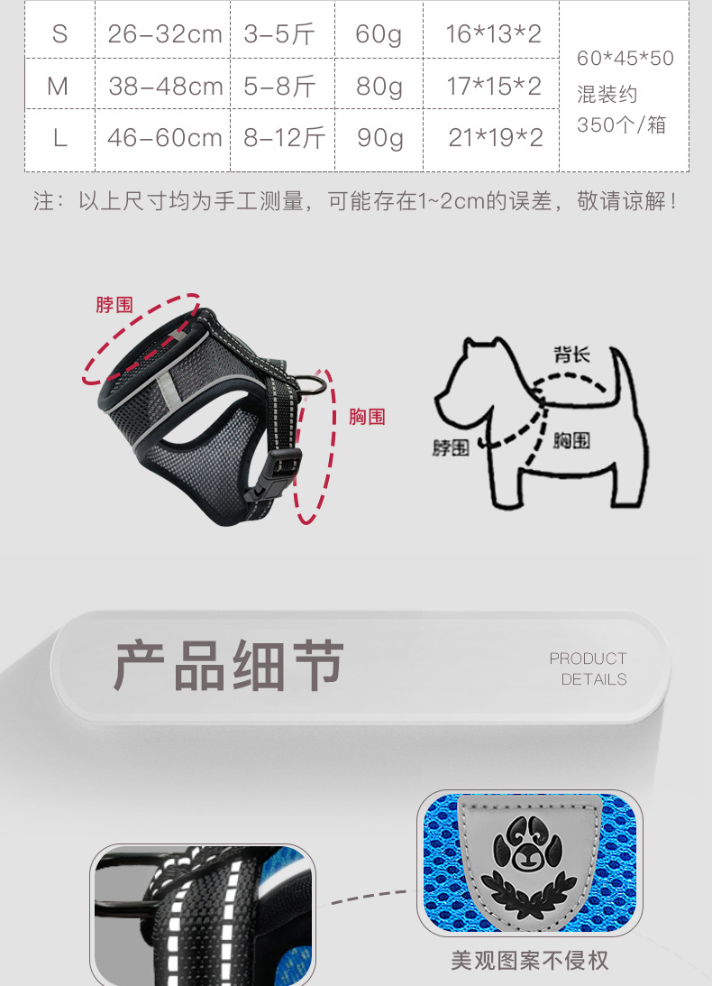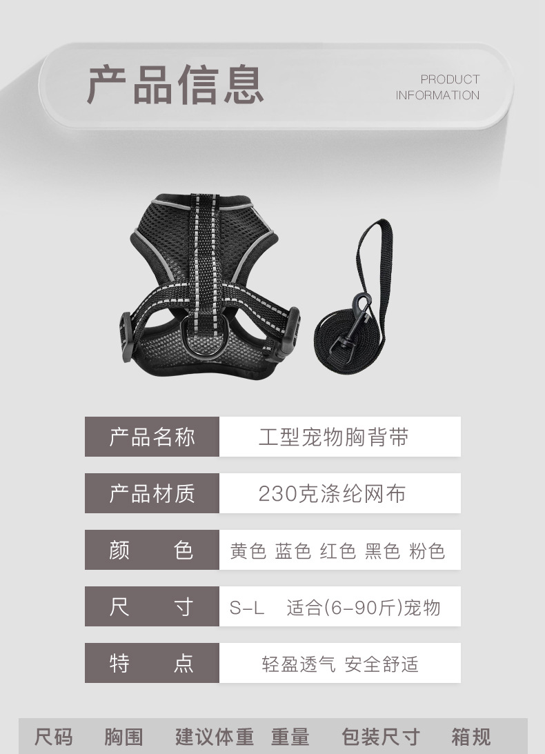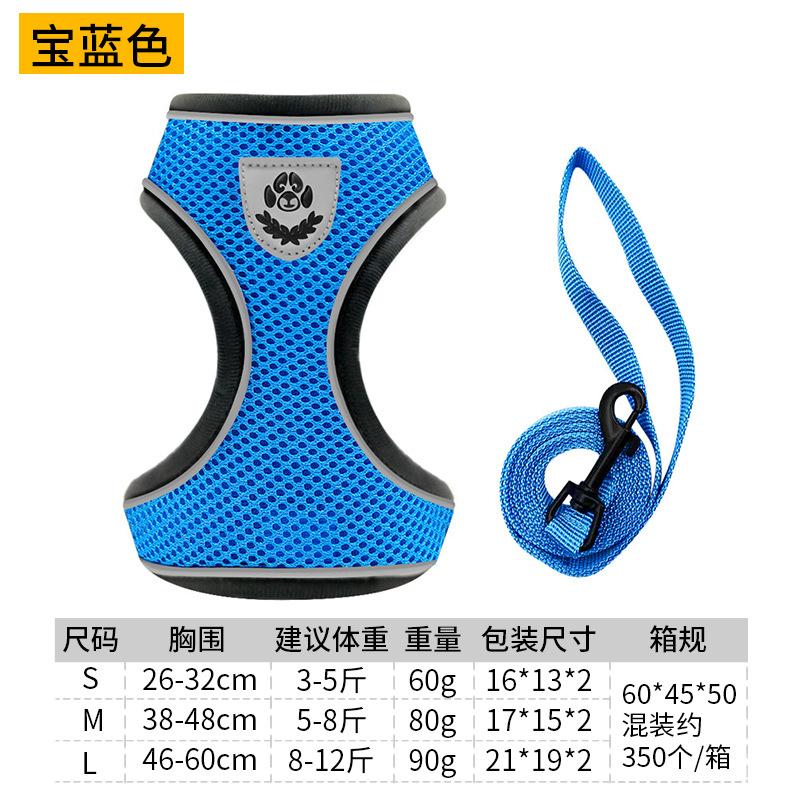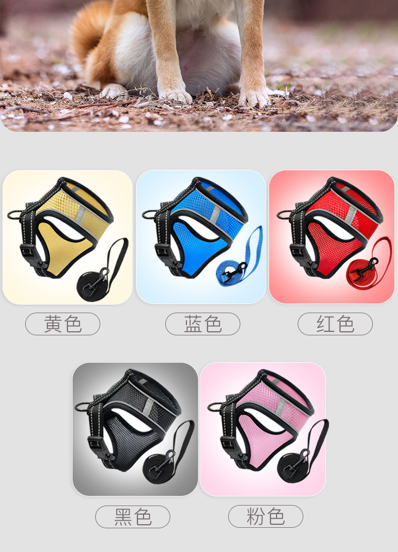국경을 넘는 애완동물 용품 신제품 강아지 목줄 하네스 조끼 대형견 소형견 겸용 제조업체 도매 애완동물