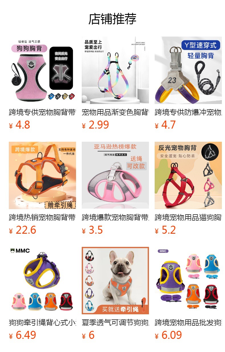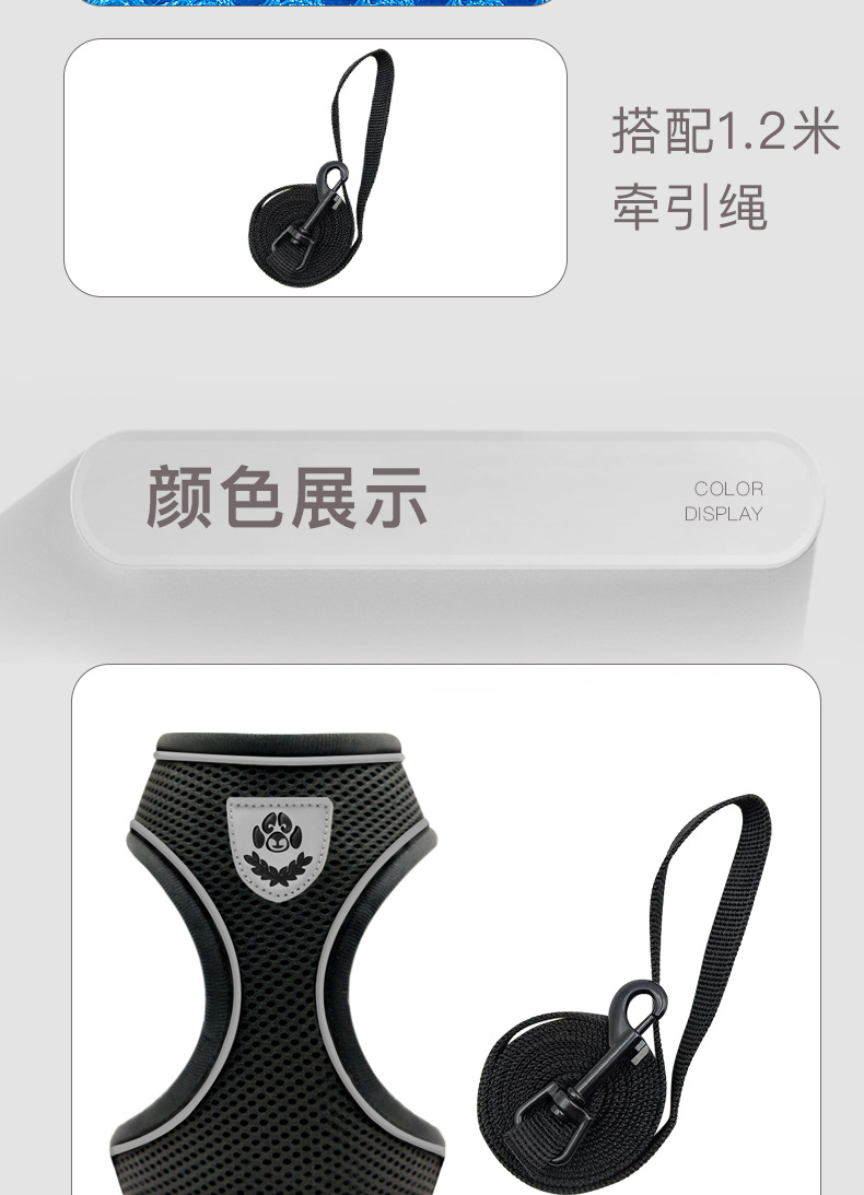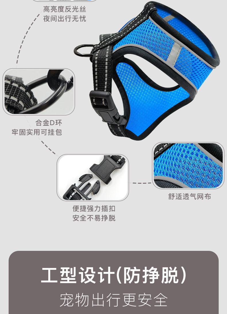 국경을 넘는 애완동물 용품 신제품 강아지 목줄 하네스 조끼 대형견 소형견 겸용 제조업체 도매 애완동물스토어 가기
