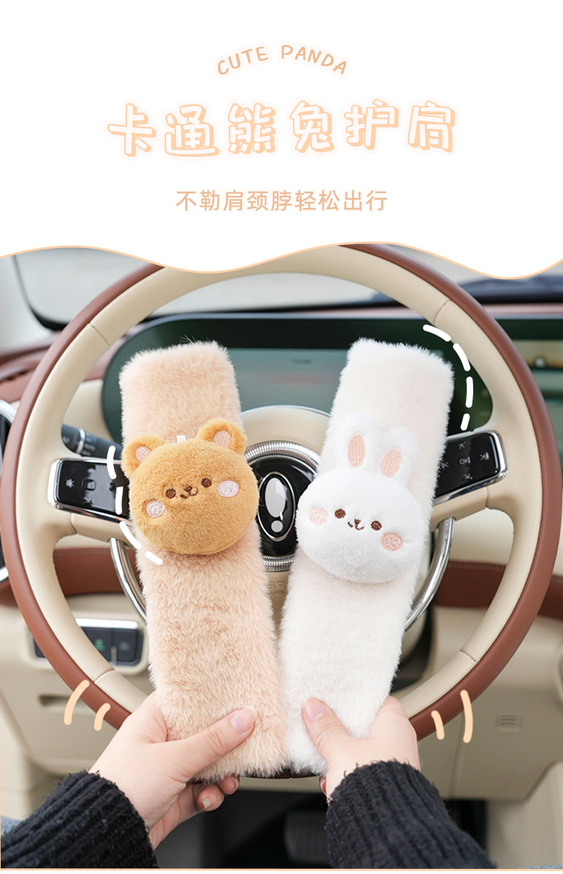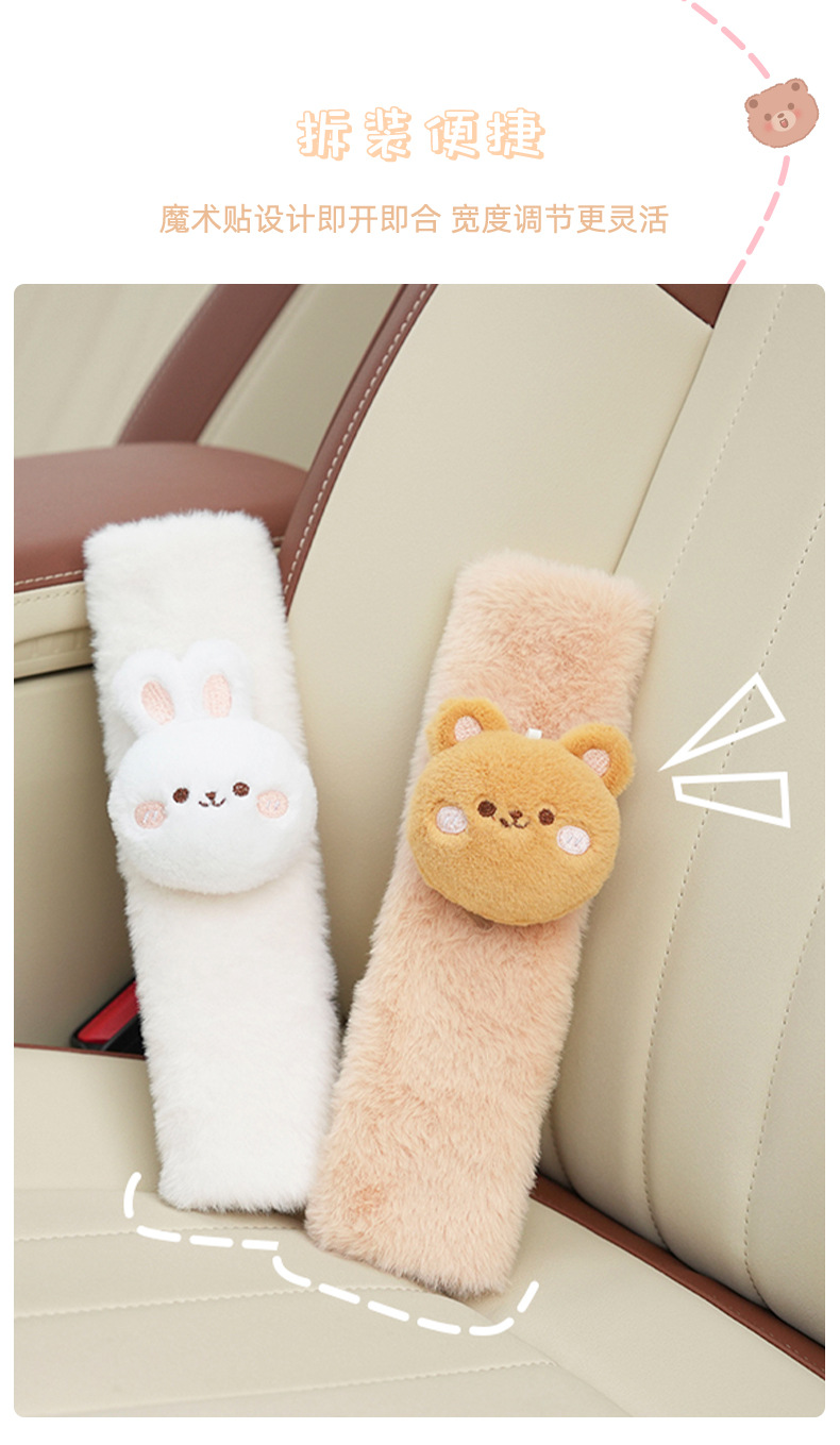 귀여운 만화 카시트 벨트 어깨 패드 플러시 곰 토끼 자동차 안티 레벨링 어깨 패드 사계절 일반 모터 용품스토어 가기