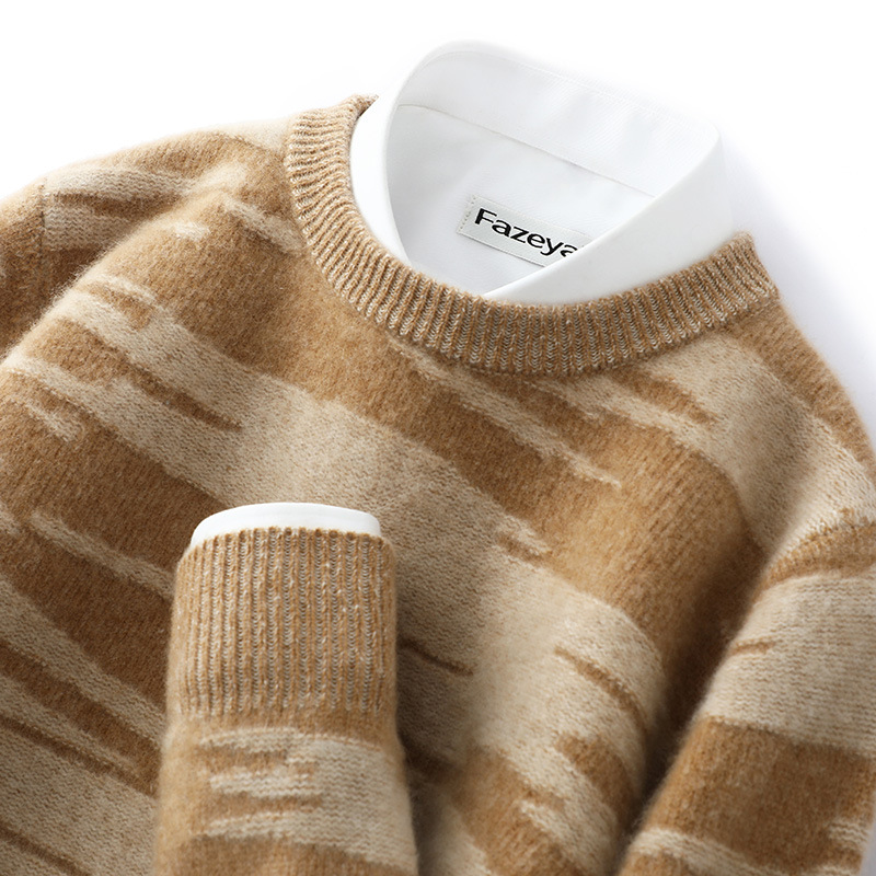 가을과 겨울 100 퓨어 울 스웨터 남성용 크루넥 컬러 매칭 두꺼운 스웨터 느슨한 캐주얼 캐시미어 스웨터 니트 베이스 셔츠스토어 가기